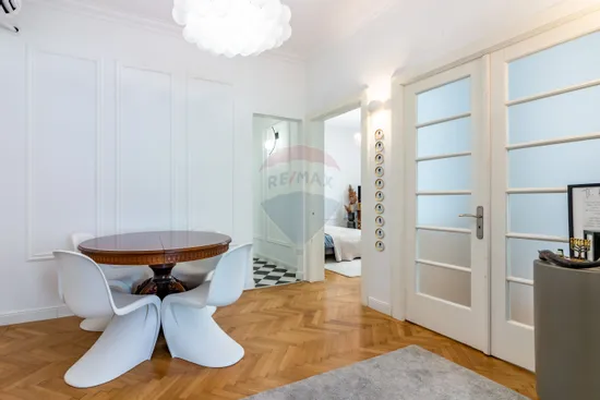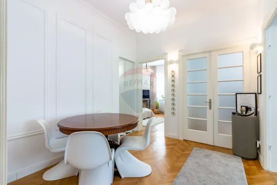 Descoperă un apartament absolut superb, cu 3 camere mari și luminoase, plus o zonă de dining, o baie, grup sanitar si camara, situat la etajul 1 al unui bloc boutique solid S+P+E+Pod locuit, din anii 1940, complet izolat termic.