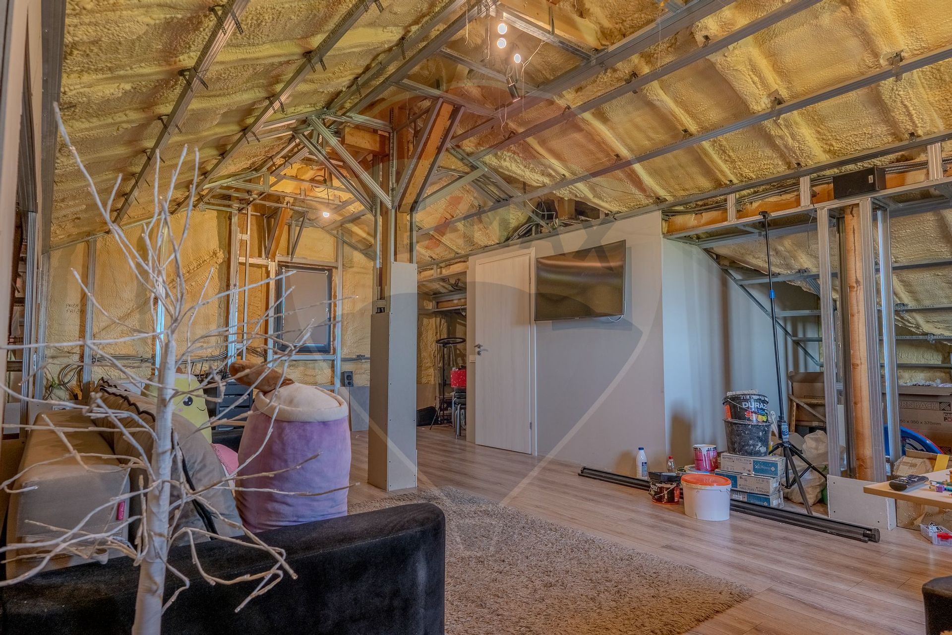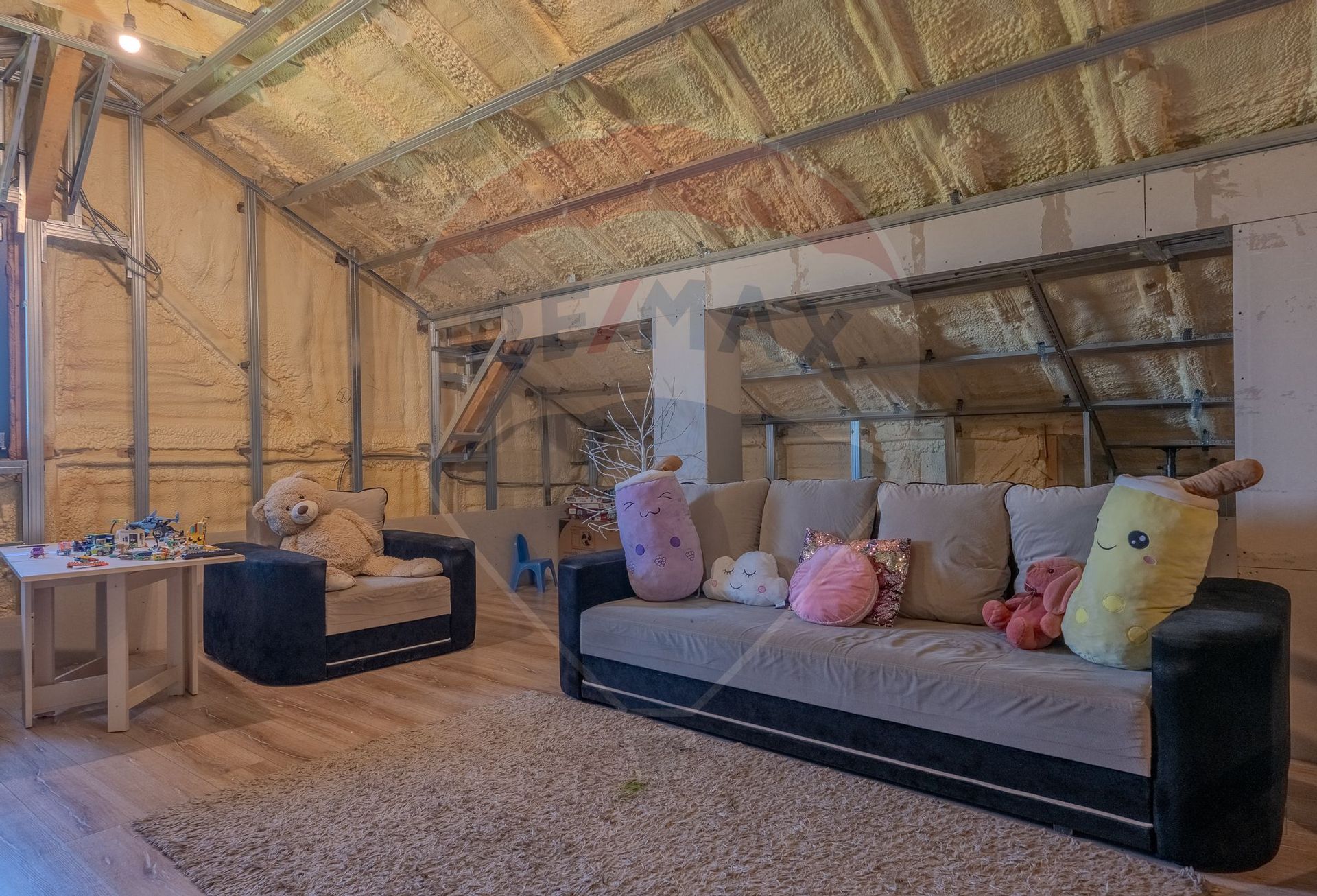Mansardă parțial finalizată – potențial suplimentar de spațiu: