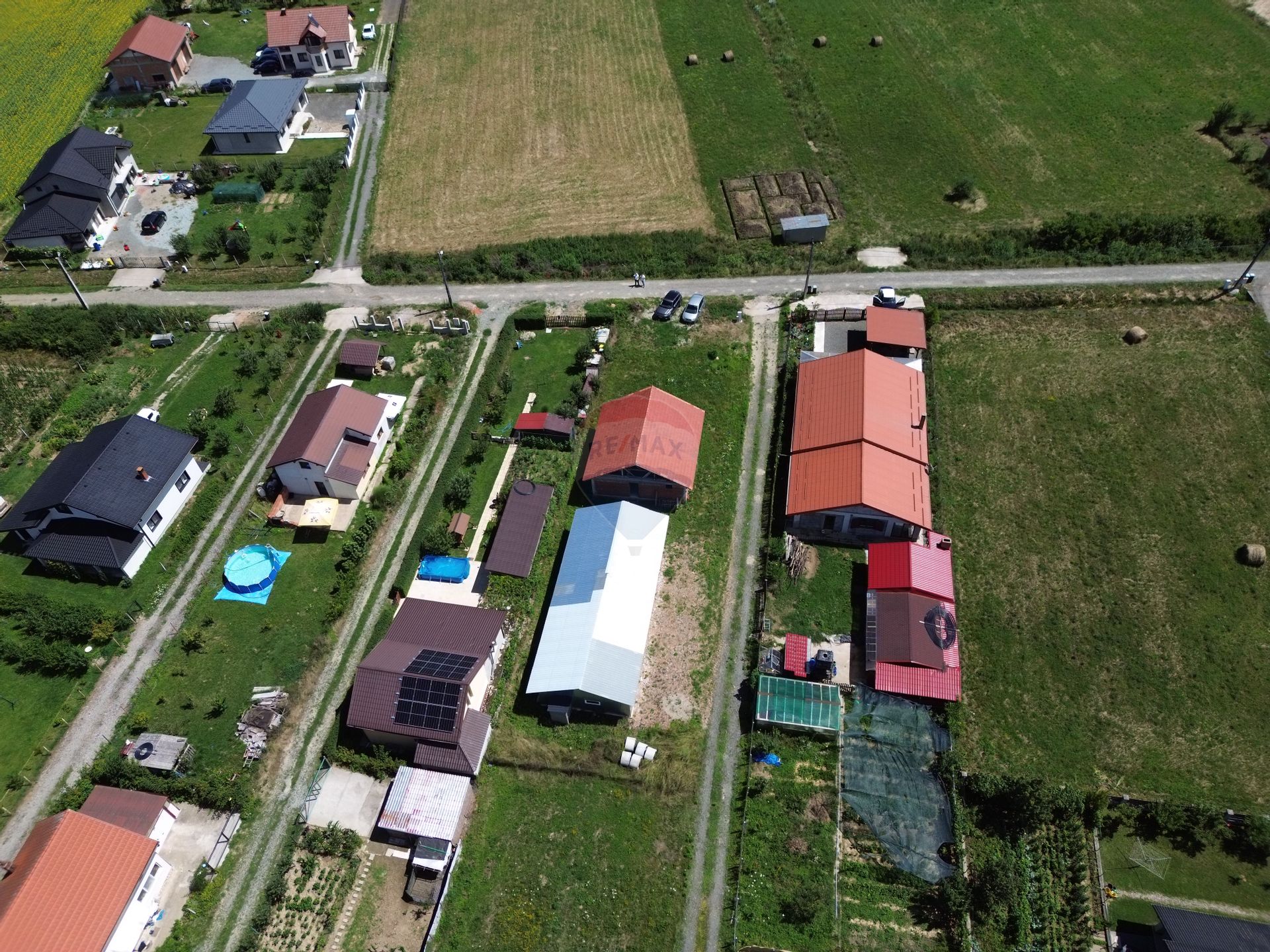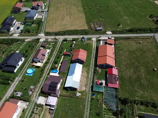 Proprietatea mai dispune de o hala pe o platforma de beton cu structura de lemn si tabla zincata pe exterior in suprafata de 125 cu toate utilitatiile pe proprietate si bransament de curent TRIFAZIC facut.