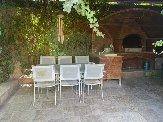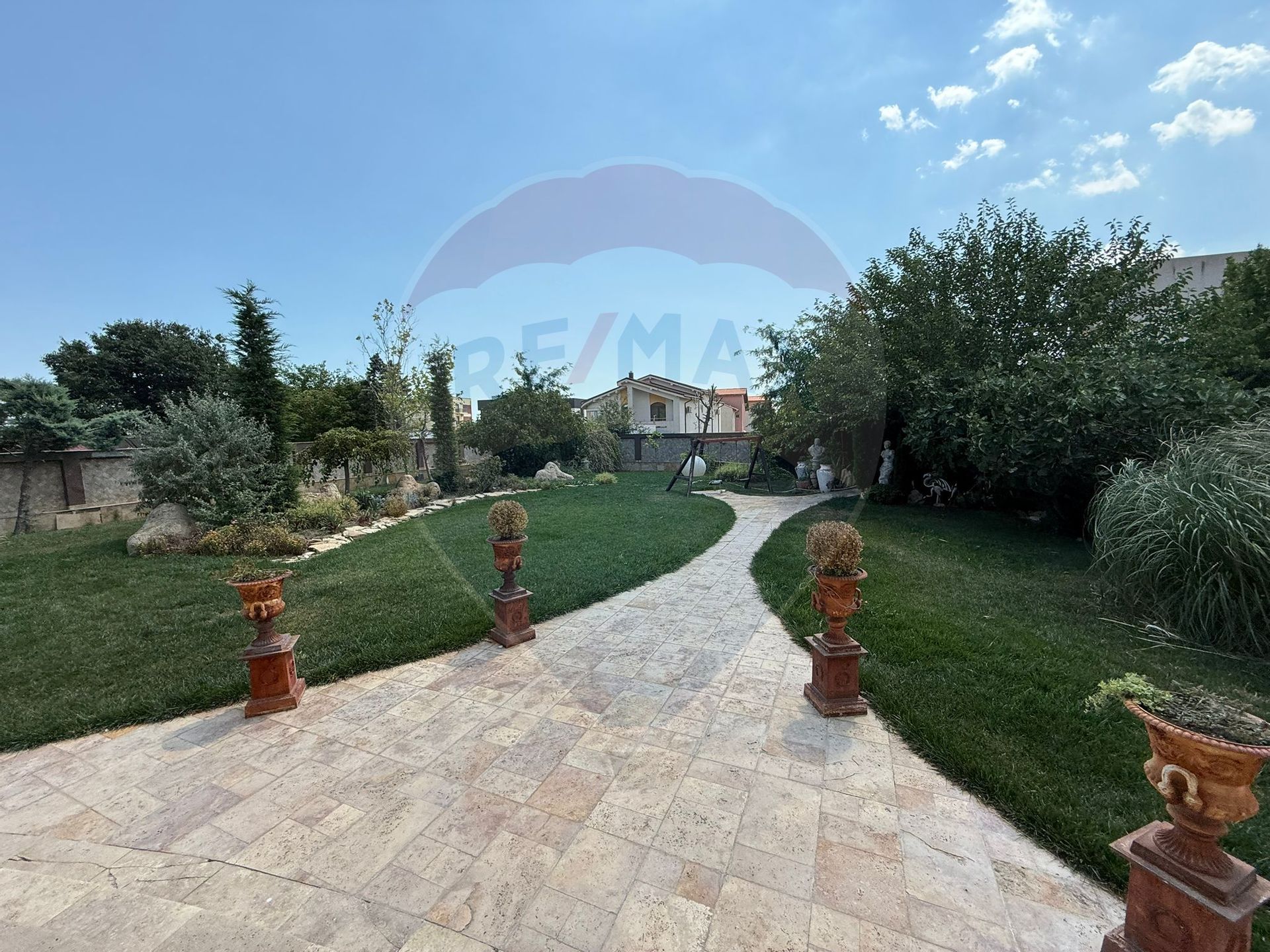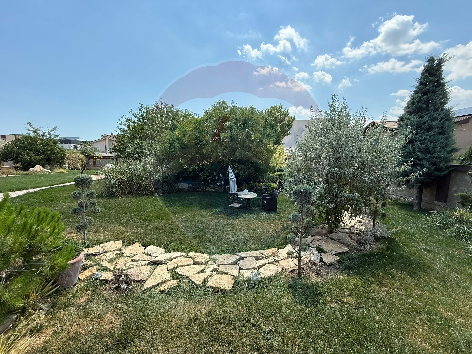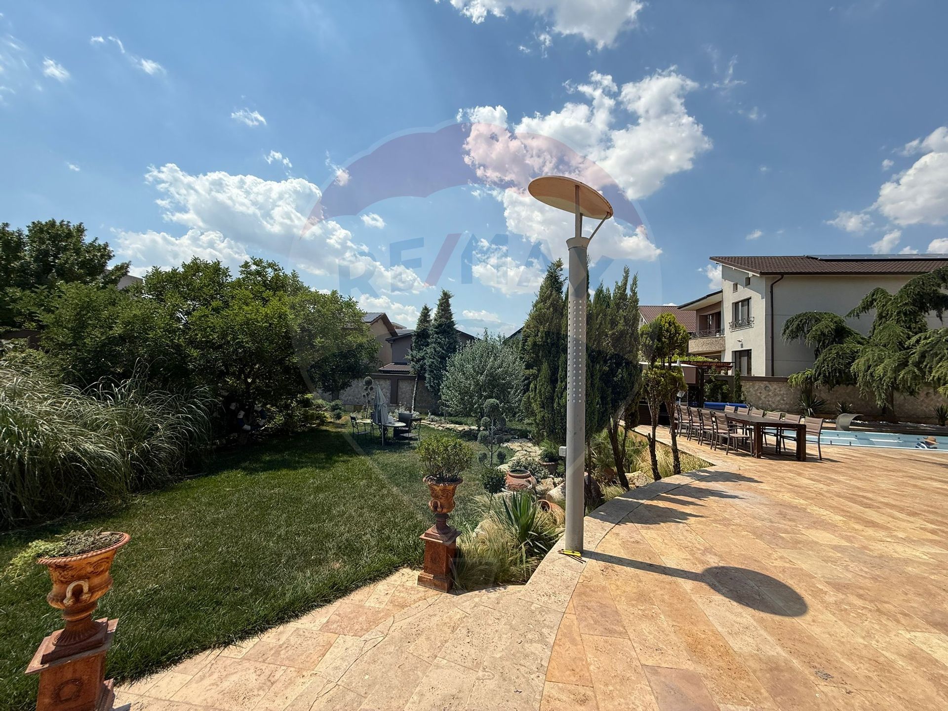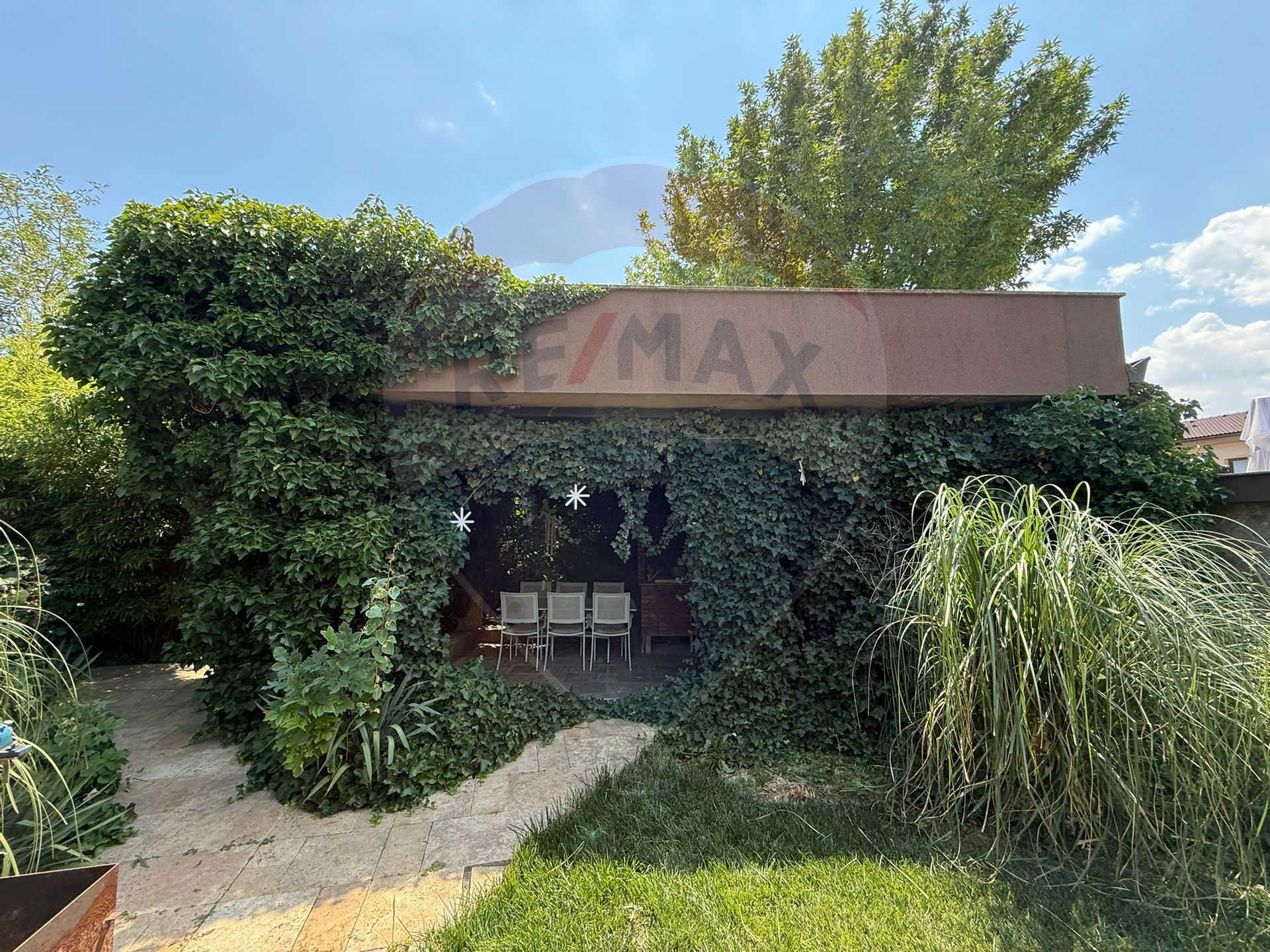 Curte superb amenajată, cu terasă acoperită, bucătărie de vară și zonă de barbeque – locul ideal pentru petrecerea timpului în aer liber.