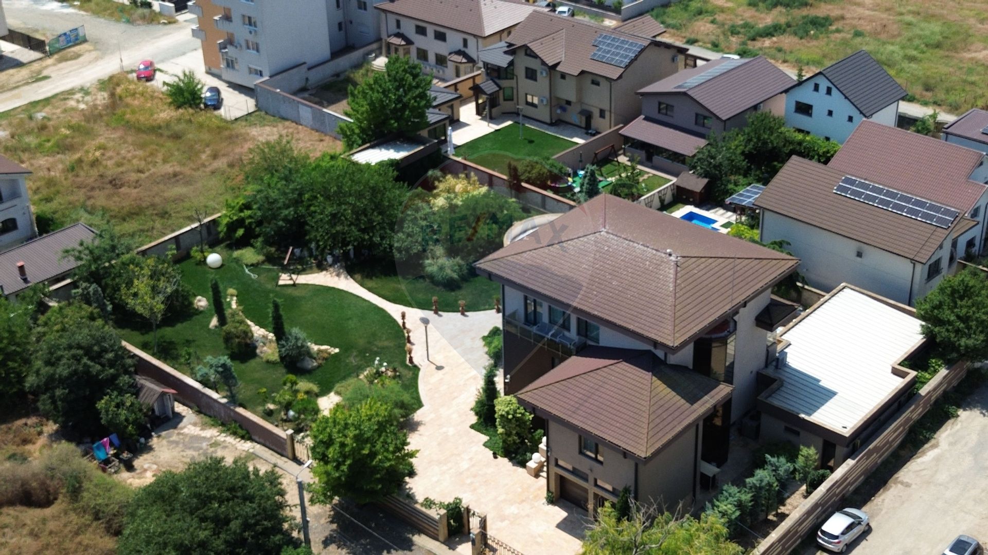Construită pe un teren generos de 2343 mp, vila are o amprentă la sol de 260 mp și este dispusă pe subsol, parter, etaj și mansardă. Proprietatea impresionează prin designul modern, finisajele de calitate și spațiile ample, luminoase și perfect compartimentate.