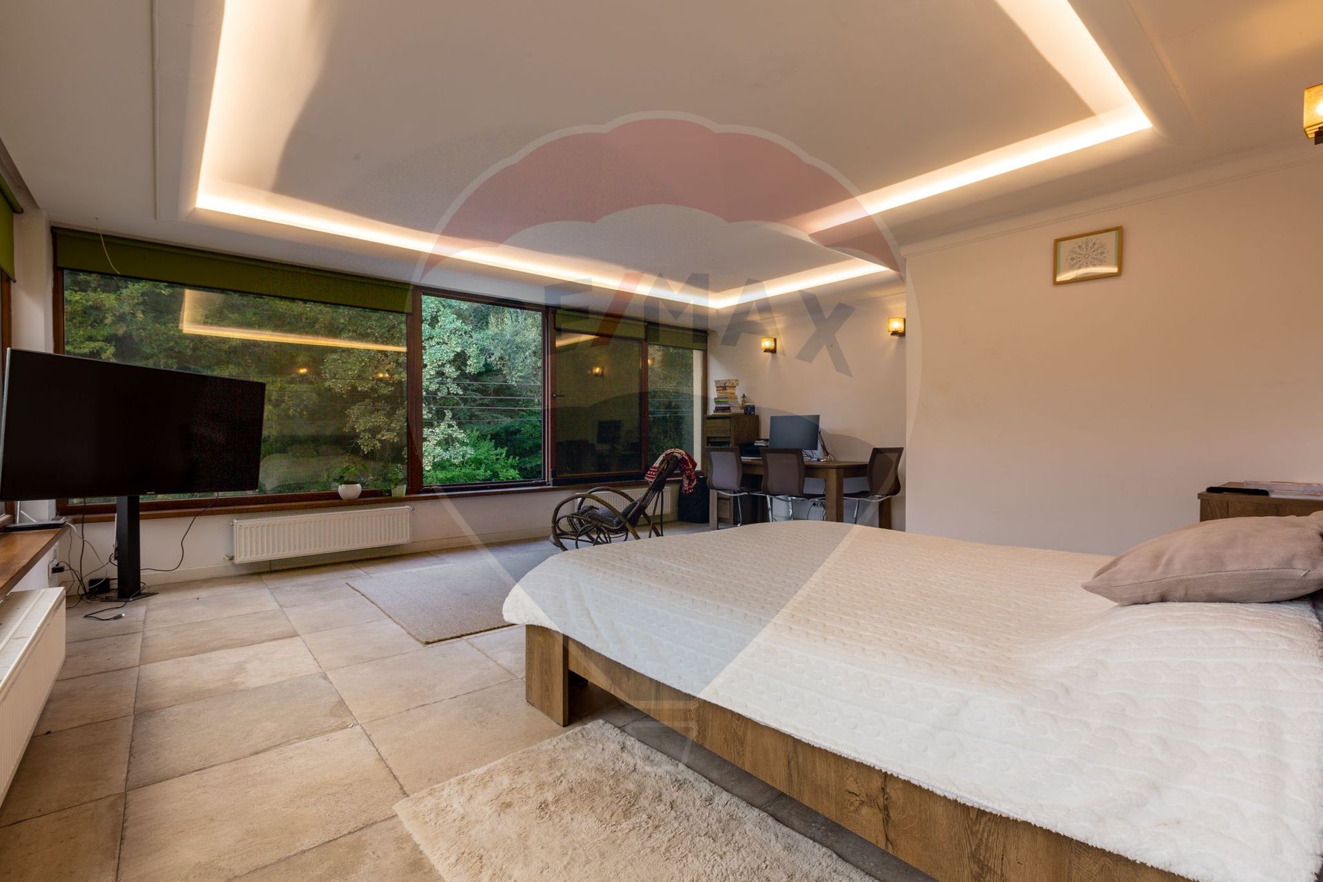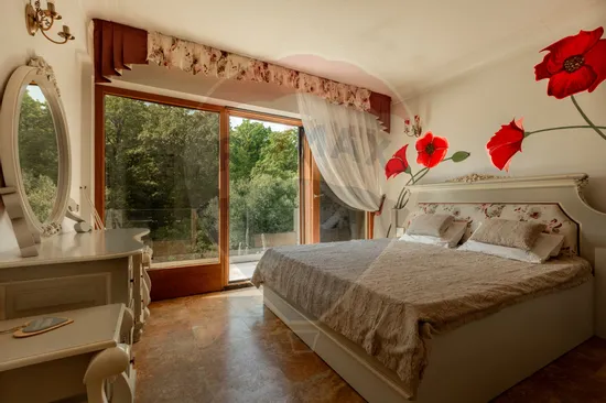 3 dormitoare spațioase, fiecare cu personalitate proprie, matrimonial elegant, dormitor romantic cu vedere la pădure și dormitor vesel pentru copii. 2 băi elegante, cu finisaje de lux, cadă freestanding și detalii clasice