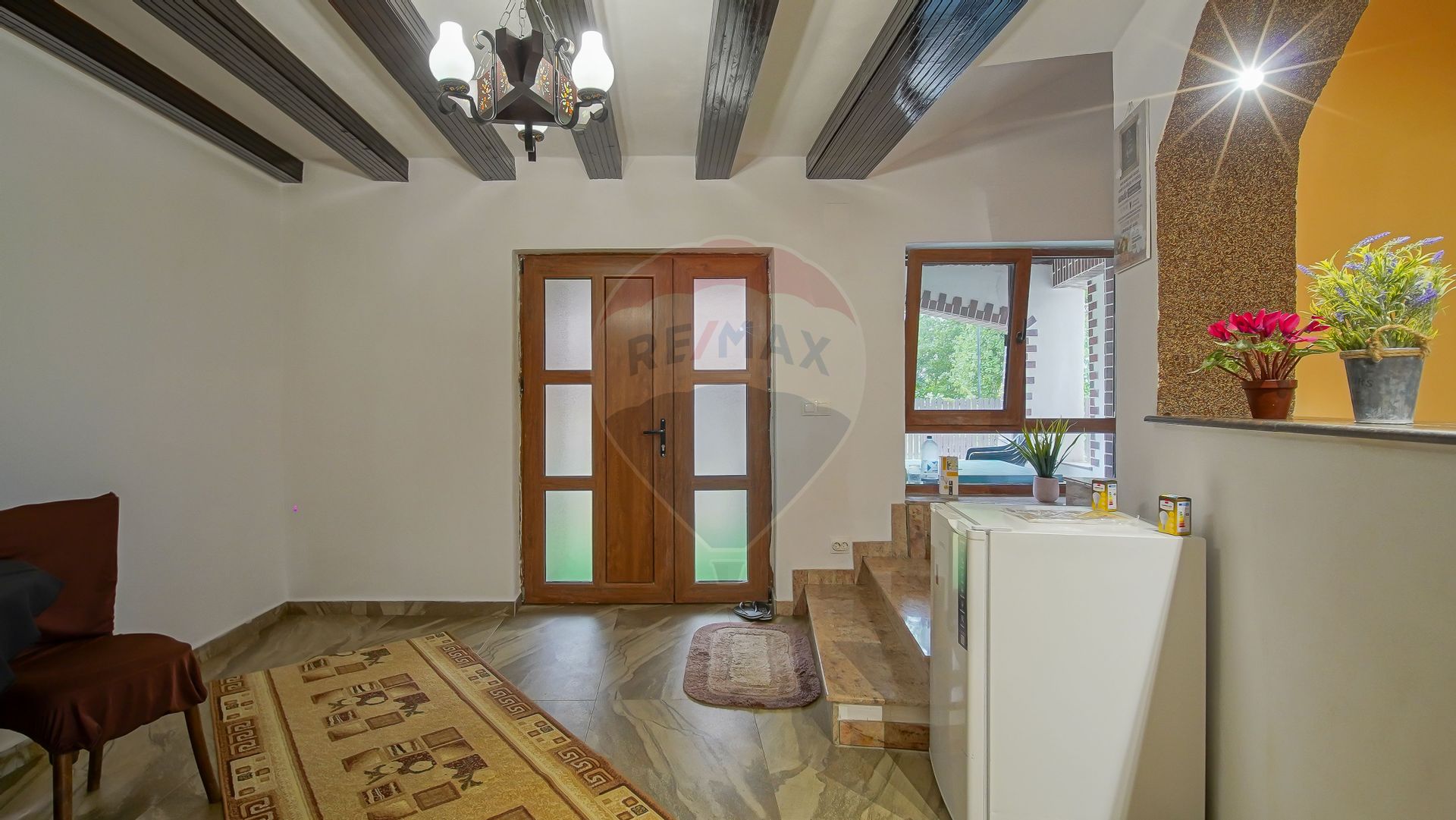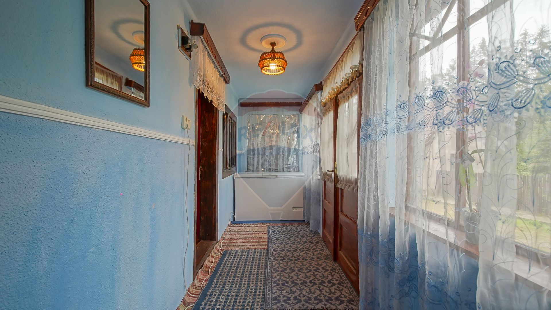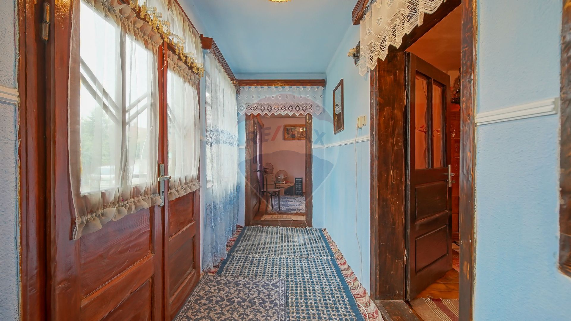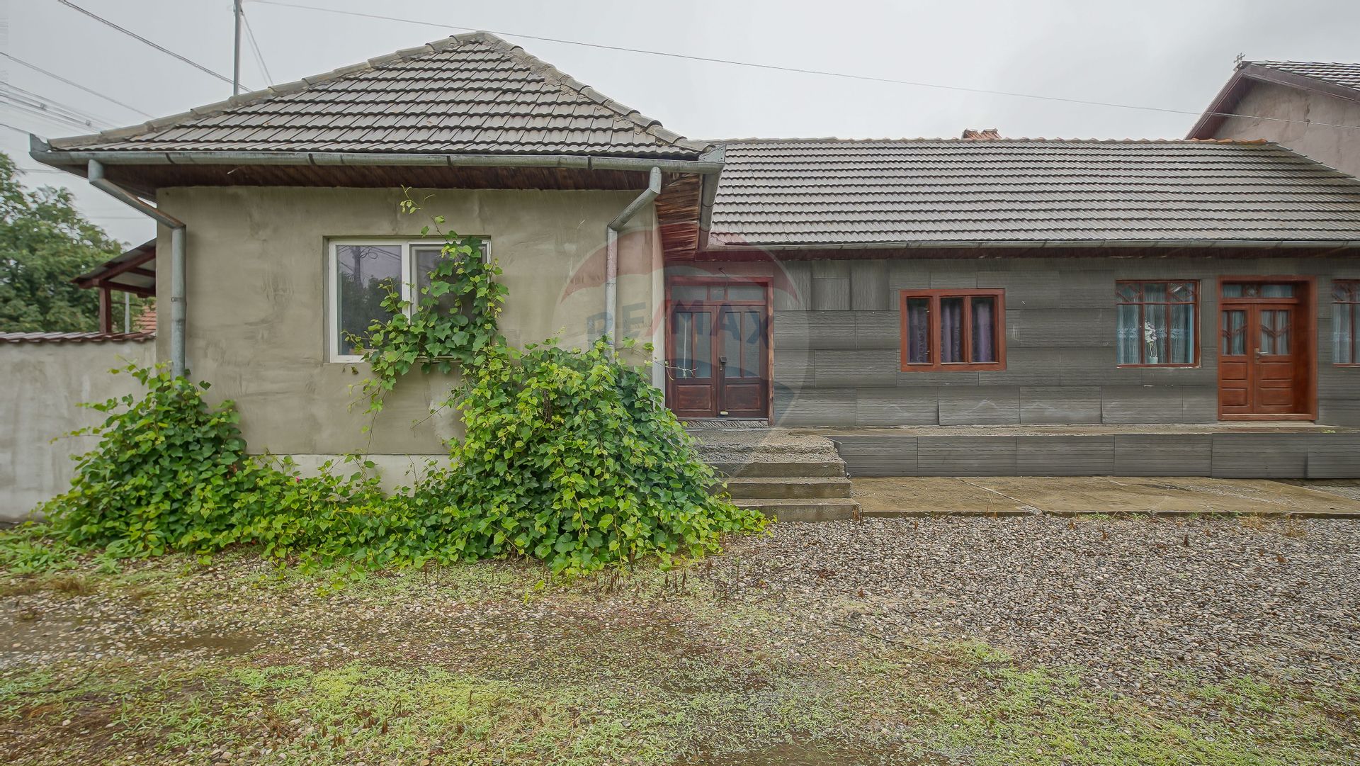 🏡 Casa bătrânească (43 mp utili) – cu verandă, 2 camere și o cămară clasică. Are acel aer rustic, autentic, pe care nu-l mai găsești azi.