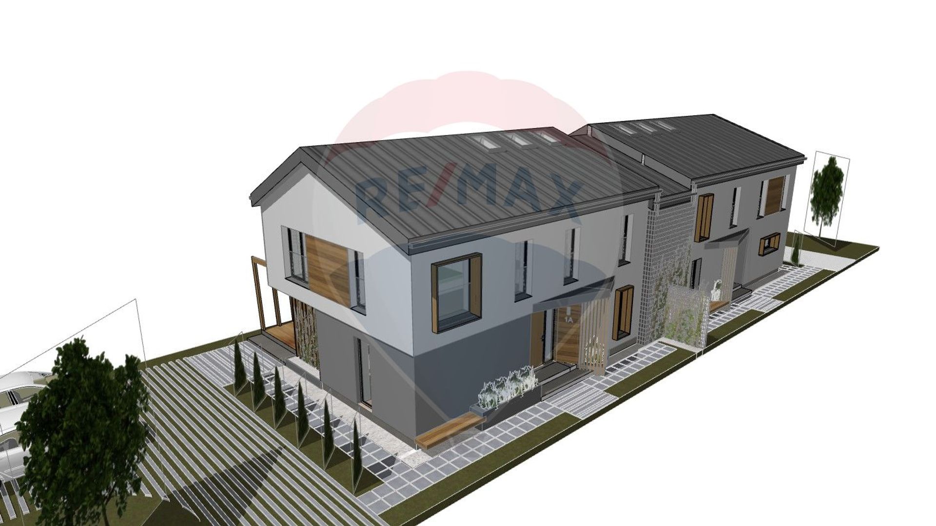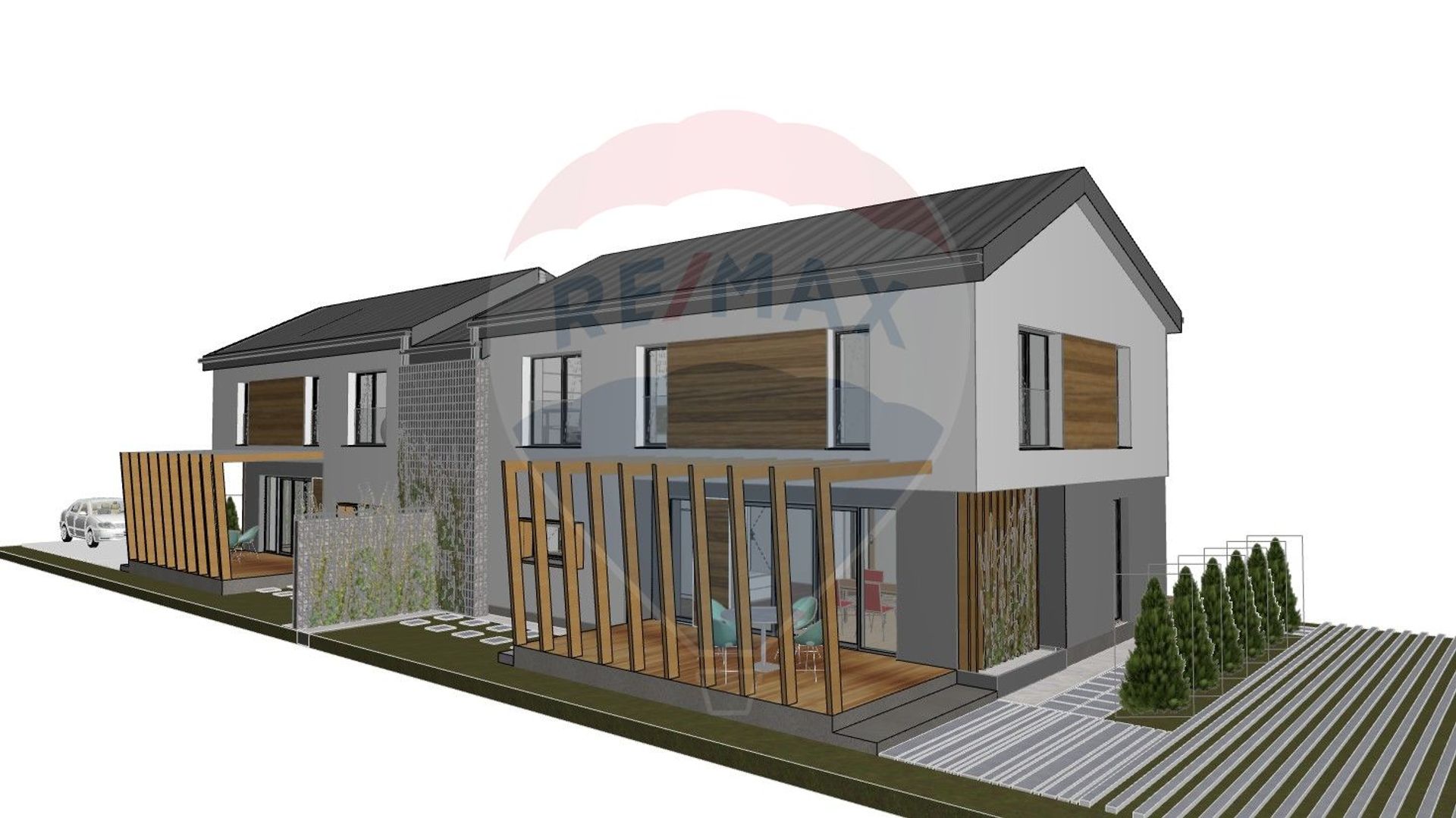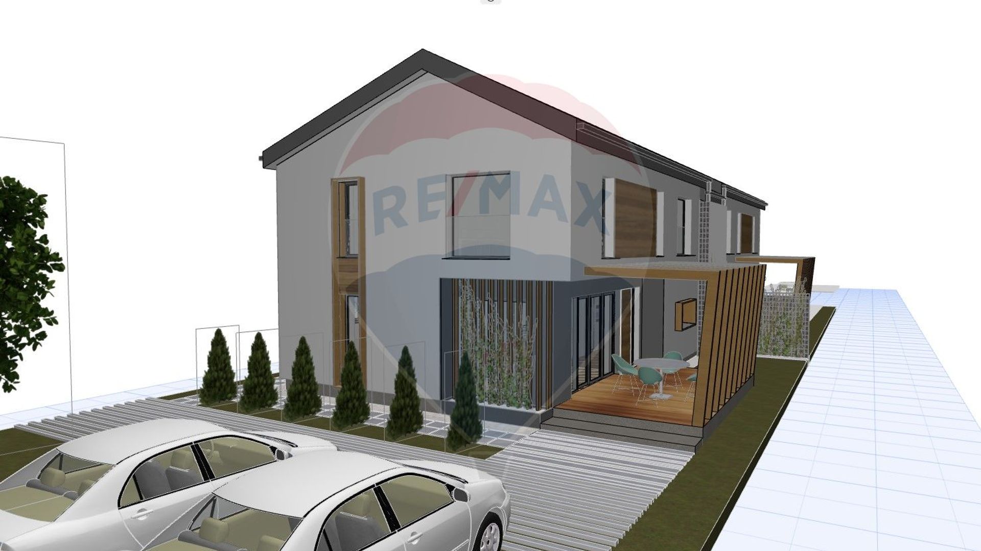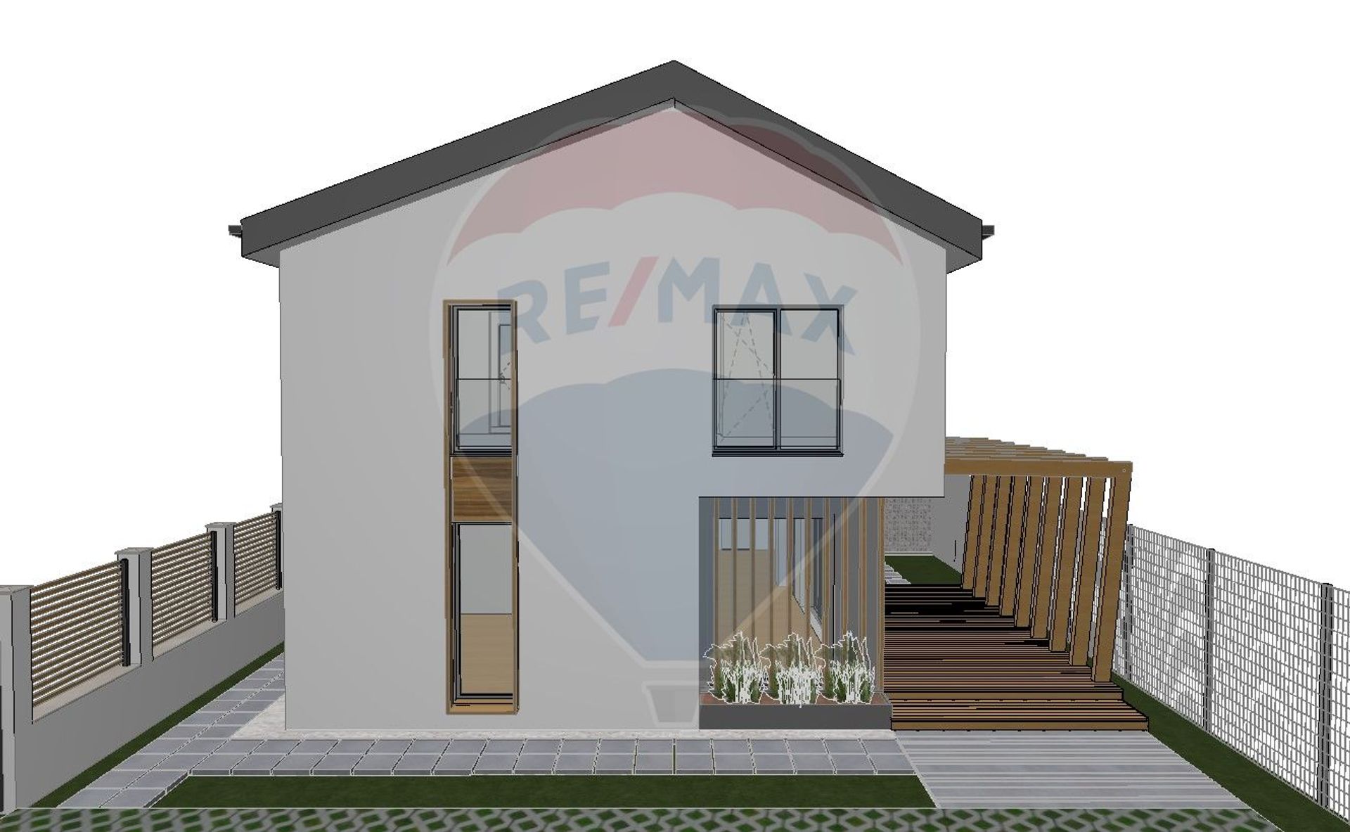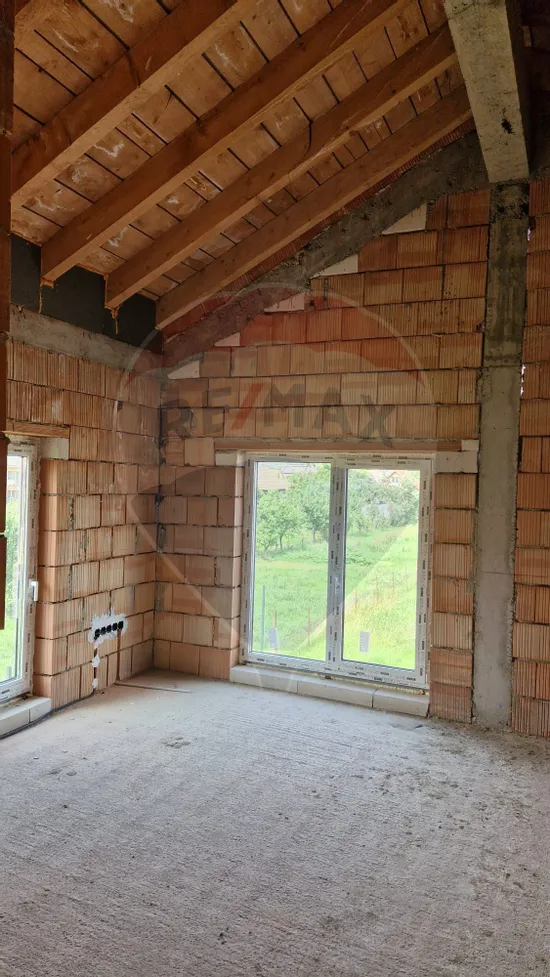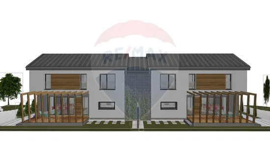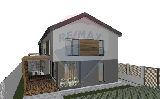 La etaj se afla doua dormitoare deservite de o baie, iar dormitorul matrimonial ofera un plus de intimitate datorita baii proprii si dressingului generos. Incalzirea in pardoseala, constructia din caramida Porotherm, geamurile termopan REHAU cu 3 foi de sticla, profil de 82 mm si 7 camere, precum si izolatia exterioara cu polistiren de 15 cm – EPS 100, asigura confort termic ridicat, eficienta energetica si izolare fonica superioara. De asemenea, lemnul folosit in structura acoperisului este ignifugat, adaugand un nivel suplimentar de siguranta si durabilitate constructiei.