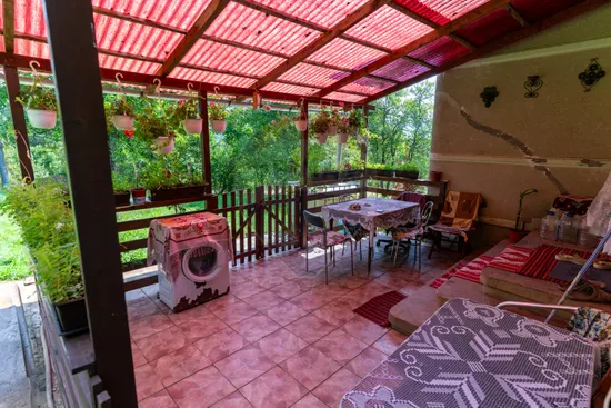 Casa taraneasca cu imbunatatiri recente compusa din 2 dormitoare, hol, bucatarie, baie, 2 terase exterioare .Casa este din caramida, Construita in 1964, are geamuri noi, acoperita cu tigla, In curte se mai afla o sura si o magazie. Terenul in suprafata totala de aprox 1 ha, relativ plan , din care curte de 669mp . Incalzirea se face pe cazan cu lemne si calorifere. Circuite electrice noi, pe cupru. Casa se vinde mobilata si utilata. Accesul din drumul principal pana la casa se poate face cu auto , jumatate din drum este betonat iar jumatate este piatra si pamant. Ofera o priveliste minunata asupra zonei si multa liniste. Acces internet de mare viteza: fibra optica!