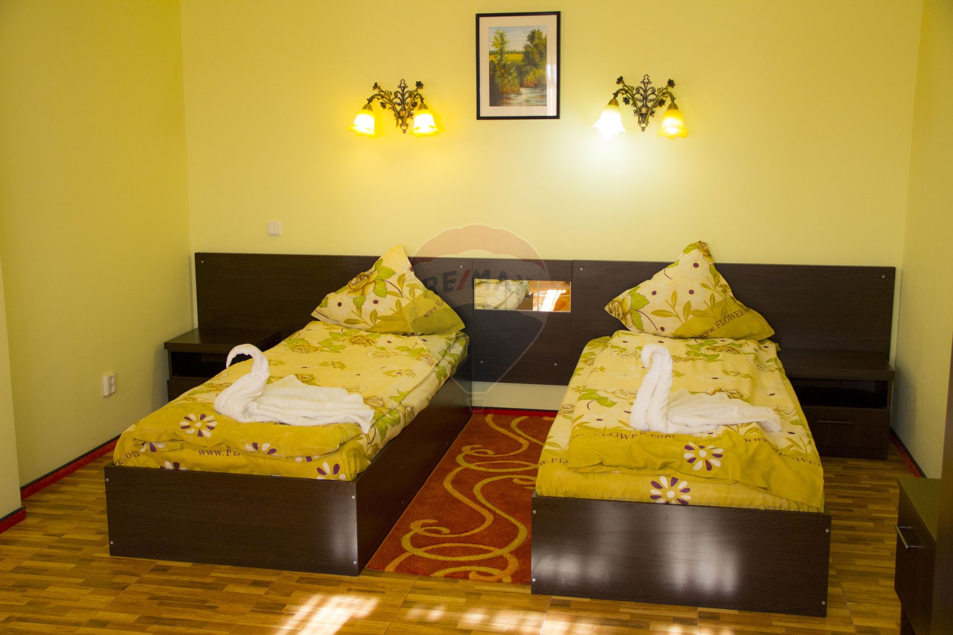 O afacere solidă, complet funcțională, situată pe un teren de 10.000 m² în zona Buftea. Suprafața constuită este de 5,840 m² cu o amprentă de 3,937 m², ce găzduiește 40 de camere spațioase pentru oaspeți, toate dotate cu grupuri sanitare și terase generoase pe mai multe nivele.