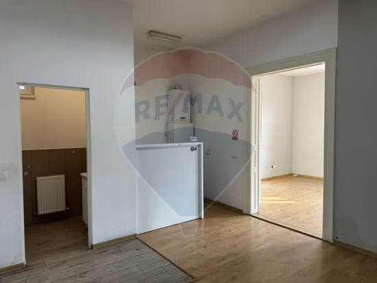 • Compartimentare practică: 3 camere, sală generoasă către stradă, 2 băi, bucătărie, hol – ideală pentru organizarea de birouri individuale și zonă de recepție