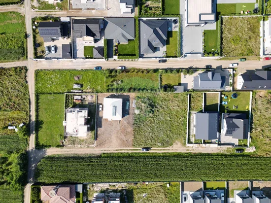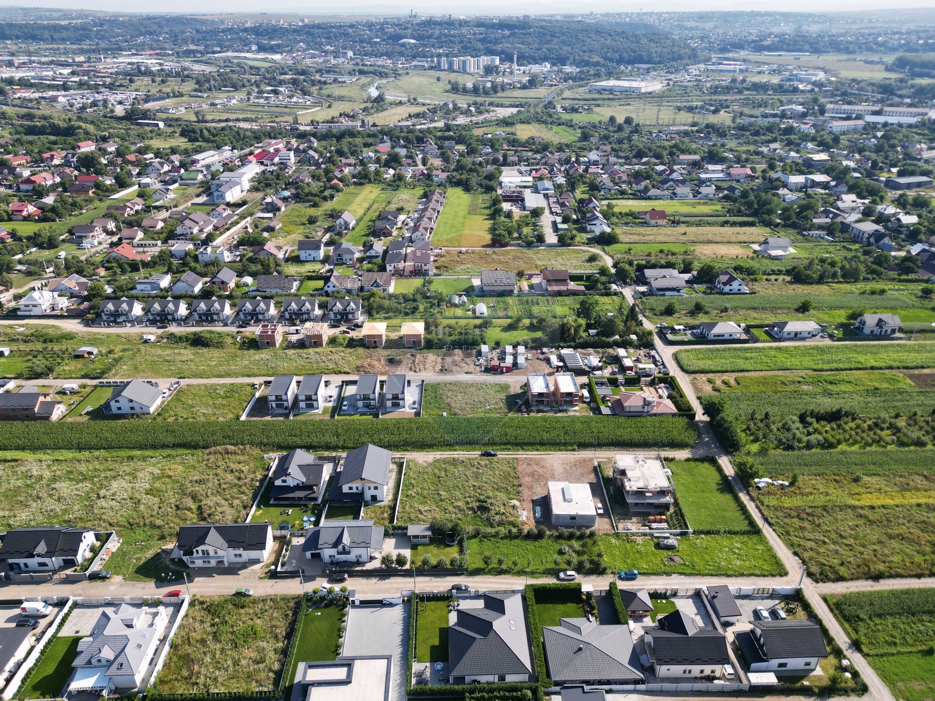 Vecinătăți: case noi și terenuri pregătite pentru construcții.