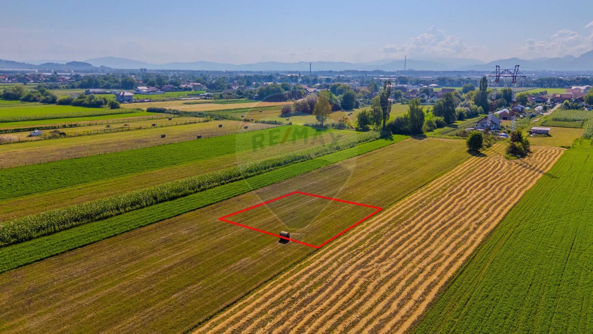 -Acces drum de pământ în fața terenului, asfalt la aproximativ 230 m