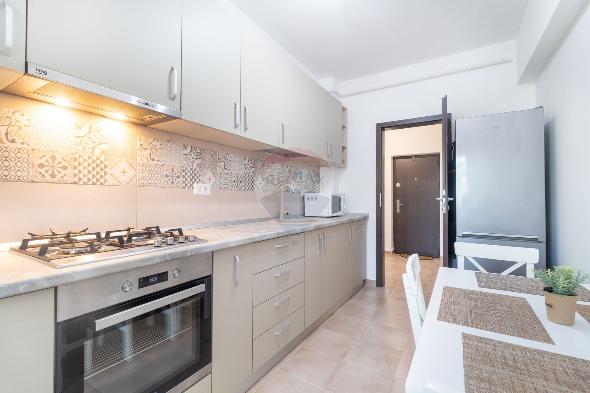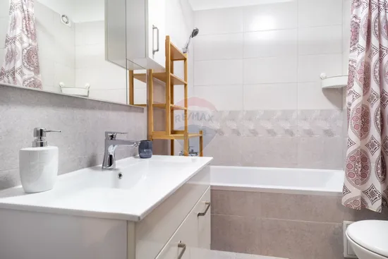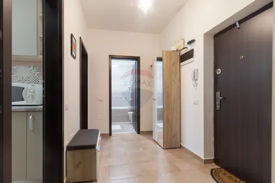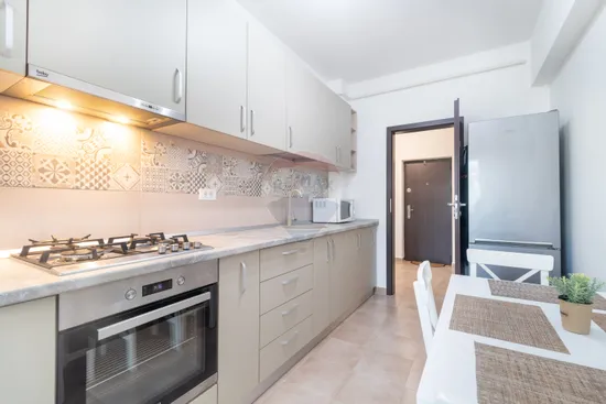Este dotat si echipat cu absolut tot ce este necesar pentru un trai confortabil. Beneficiaza de centrala termica ARISTON cu termostat, plita pe gaz, cuptor electric si hota, toate marca BEKO, cuptor cu microunde Whirlpool, combina frigorifica BEKO Neofrost, masina de spalat rufe WHIRLPOOL FreshCare+, doua TV Smart Philips - unul mai mare in living, iar al doilea mai mic pentru dormitor. Pentru confortul viitorului chirias, apartamentul este echipat chiar si cu masa de calcat, fier de calcat Bosch, uscator de rufe metalic, aspirator PhilIps si mop electric. Este echipat chiar si cu minimul necesar de vesela si tacamuri, ideal pentru cine se muta cu putine lucruri si nu doreste sa investeasca in toate acestea.
