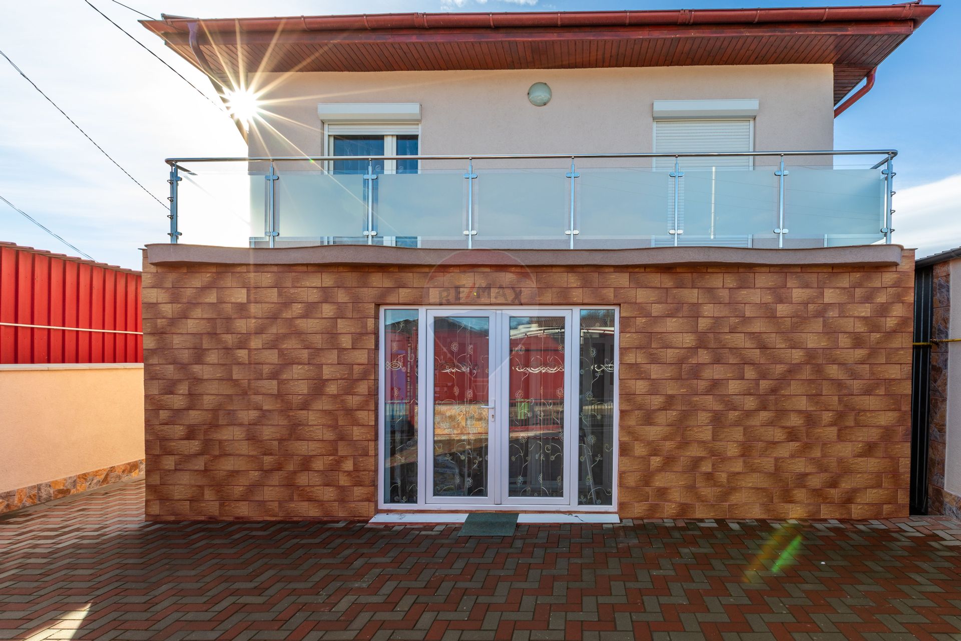 Pe lângă dotările interioare, casa se bucură la etaj de o terasă exterioară, oferind spațiu pentru atunci când vreți să vă bucurați de vremea frumoasă, de o cafea bună.