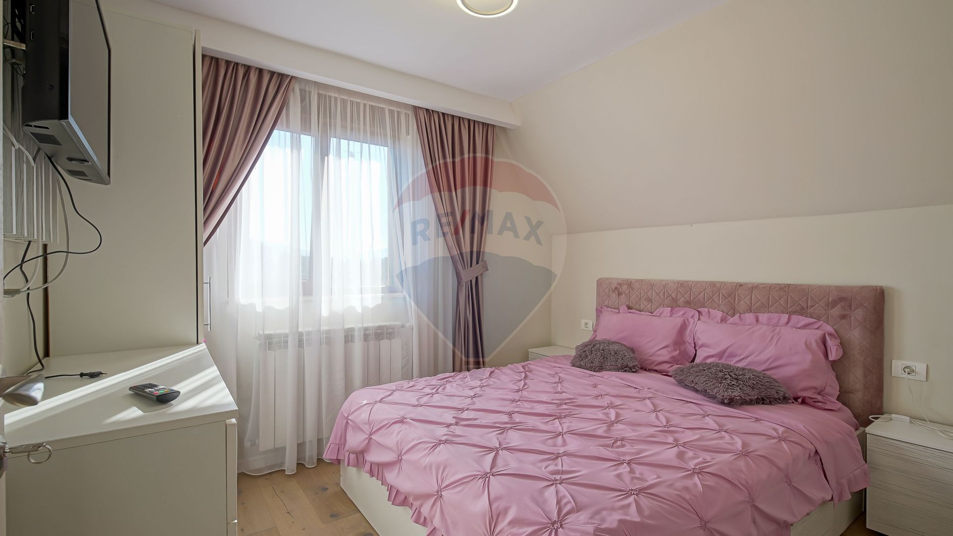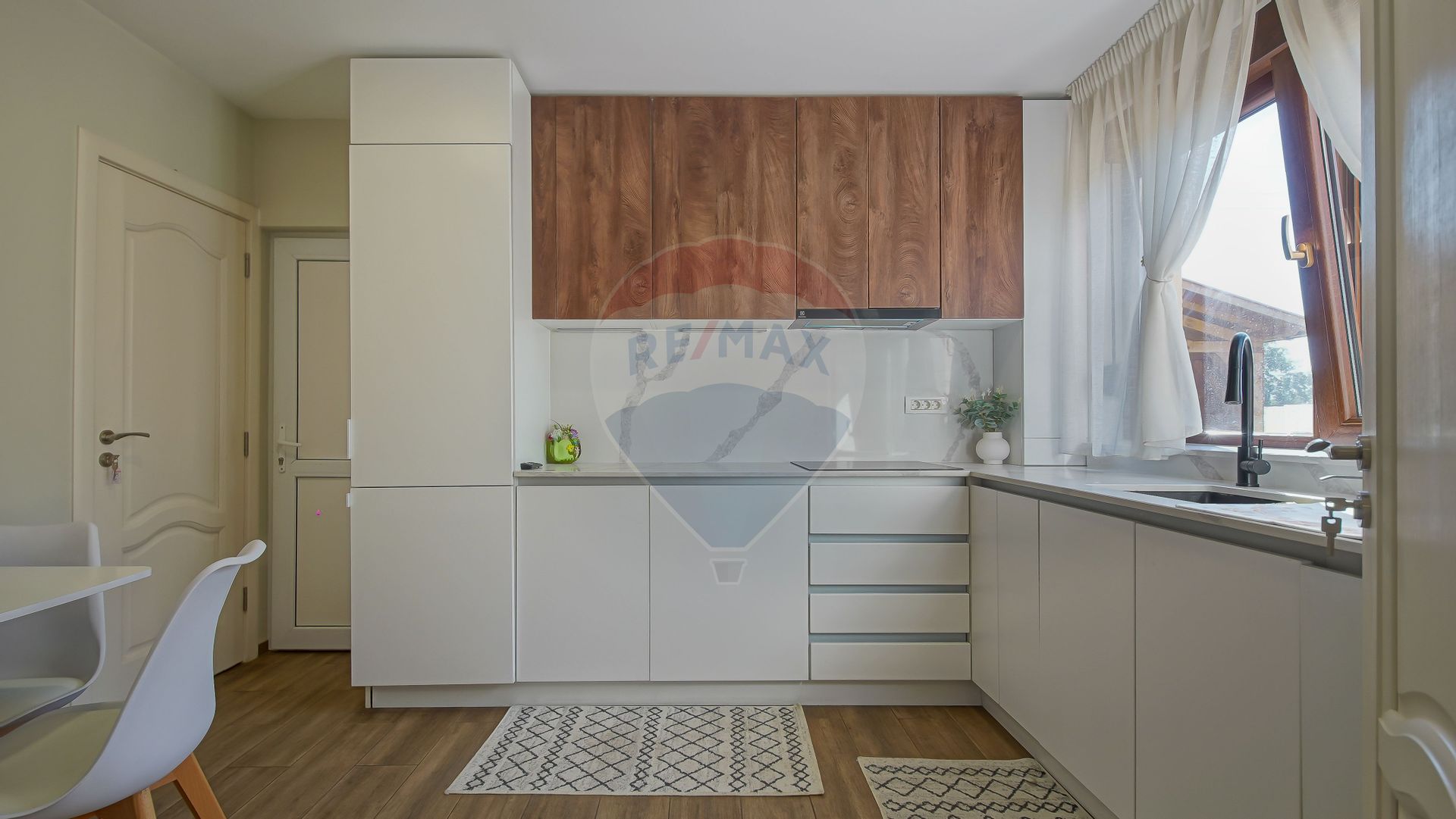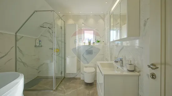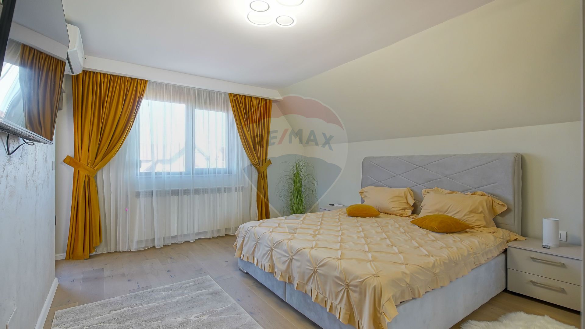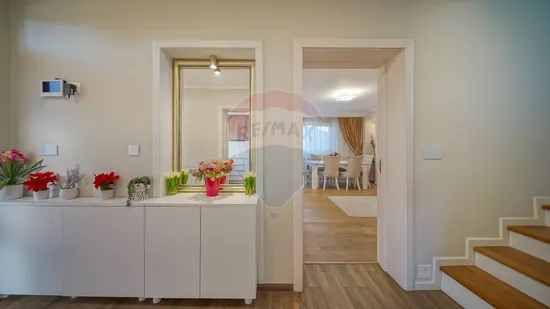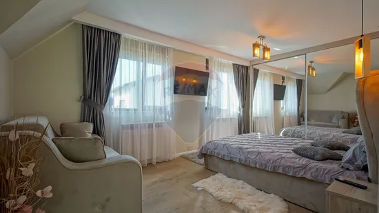 Fiecare detaliu a fost ales cu grijă: ferestre cu geam tripan și rulouri din PVC pentru confort și siguranță, finisaje moderne, mobilă și electrocasnice de calitate. Casa este dotată cu aer condiționat și sistem de supraveghere, astfel încât să te bucuri de un trai lipsit de griji.
