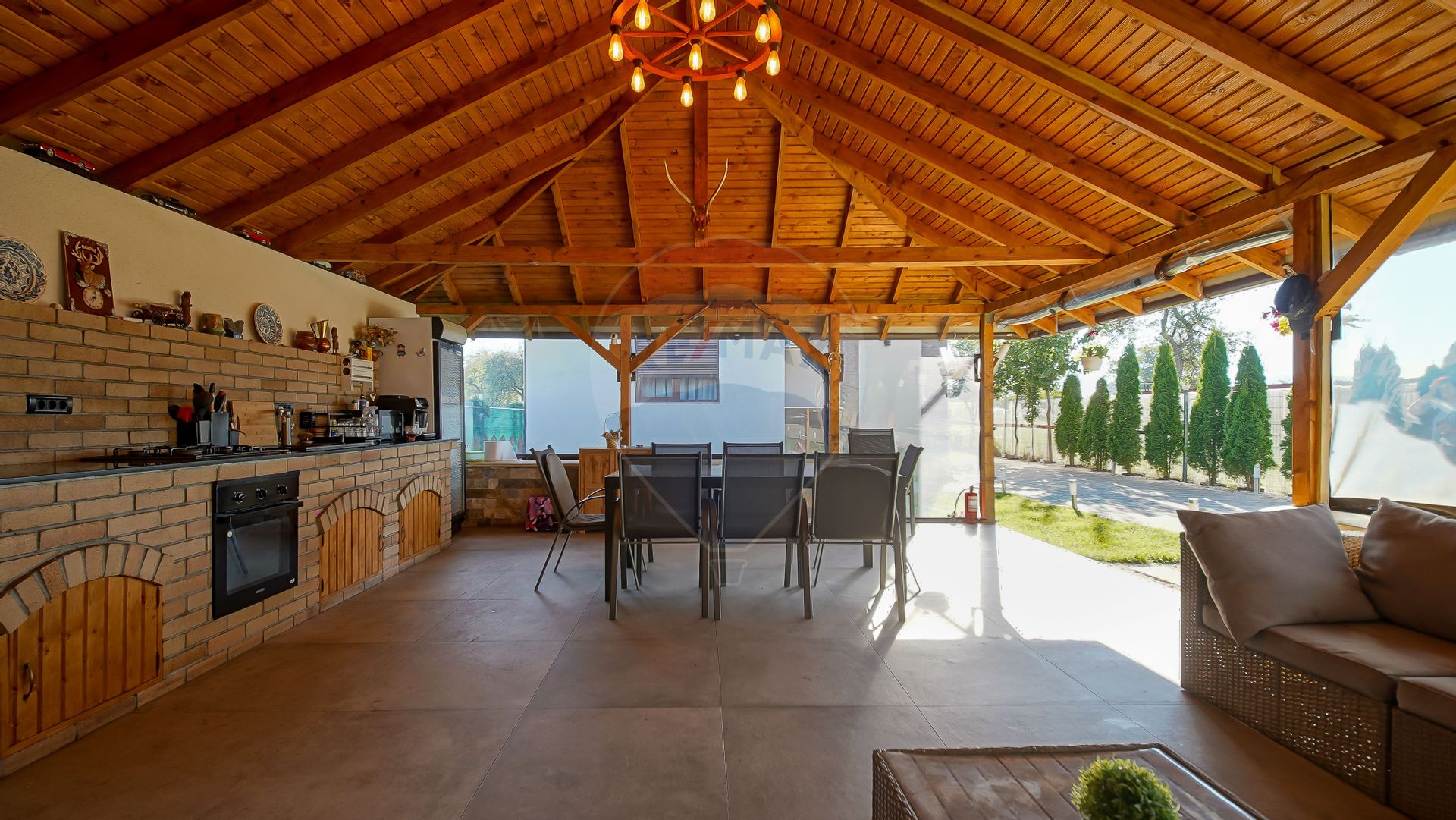 În curte, un foișor de 30 mp complet utilat cu cuptor, plită, aragaz, cuptor pentru pizza și frigider așteaptă să fie locul unde petreci serile de vară alături de prieteni și familie. Un carport pentru două mașini și o magazie completează perfect ansamblul.