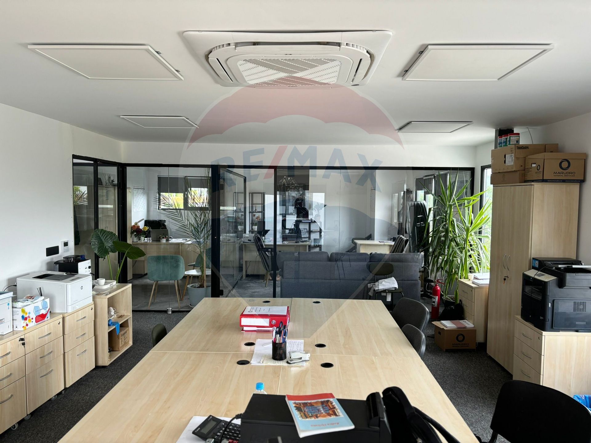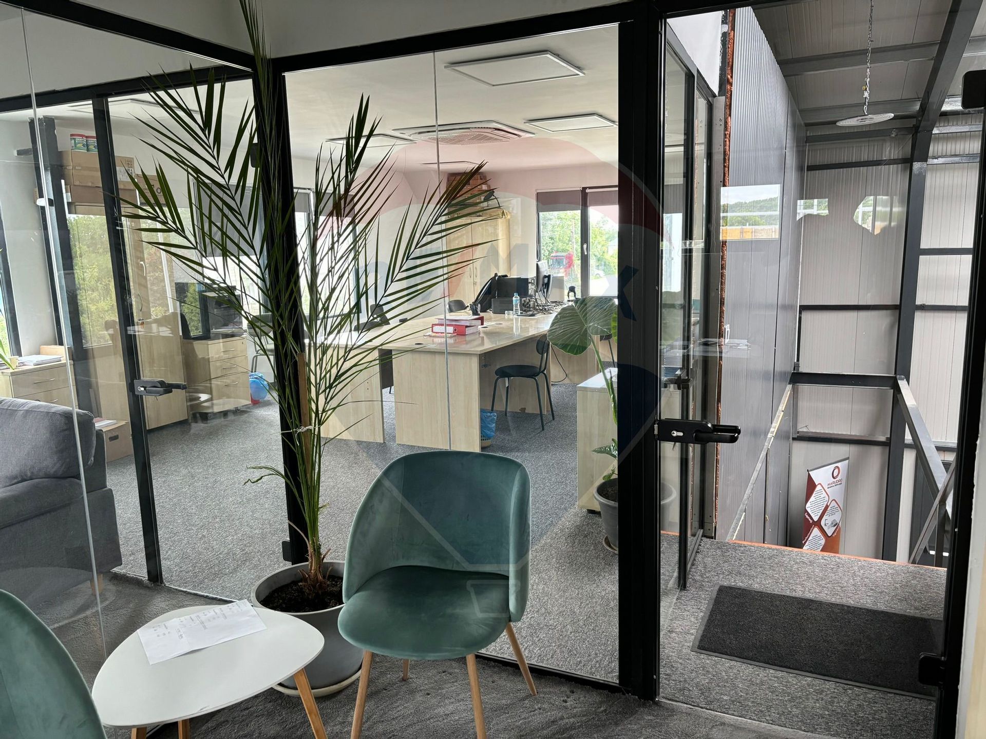- compartimentarea birourilor este realizata cu pereti din sticla
