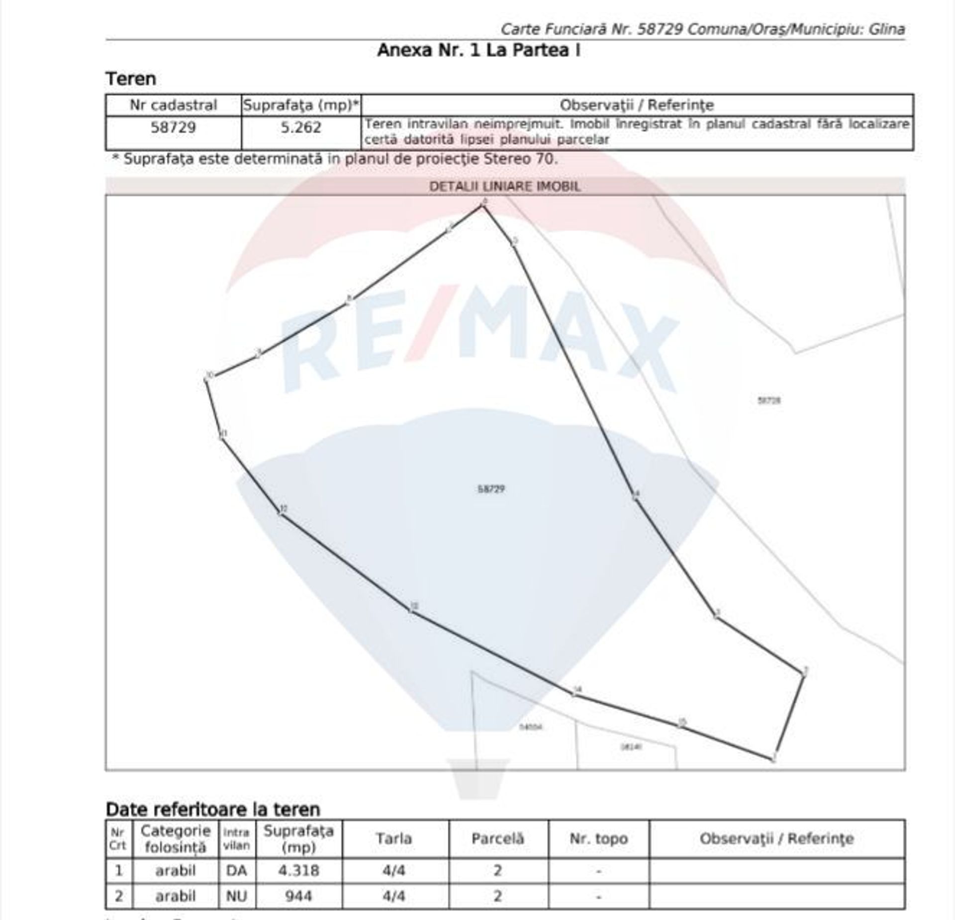 Terenul este liber de sarcini. Are toate actele la zi (cadastru, intabulare, carte funciara).