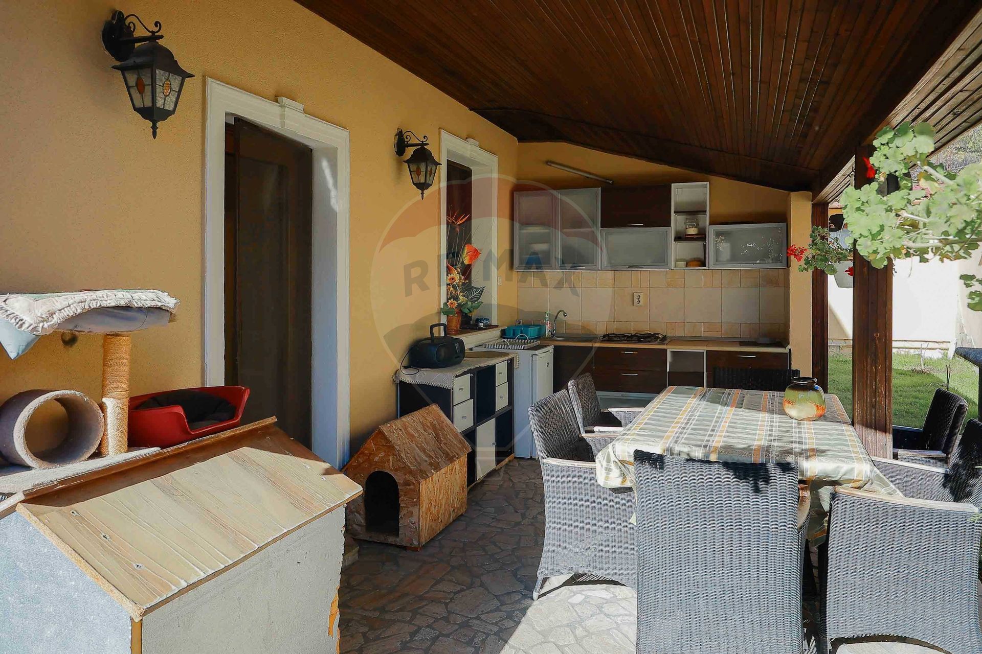 Spațiu exterior complet amenajat, ideal pentru relaxare și activități în aer liber.