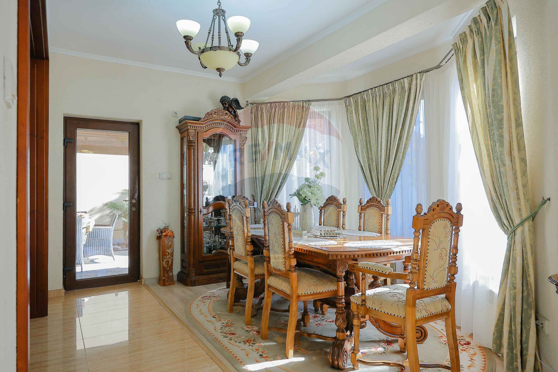 Dotări: complet mobilată și utilată, uși și parchet din lemn masiv, pardoseală din travertin, glafuri din marmură interior/exterior.