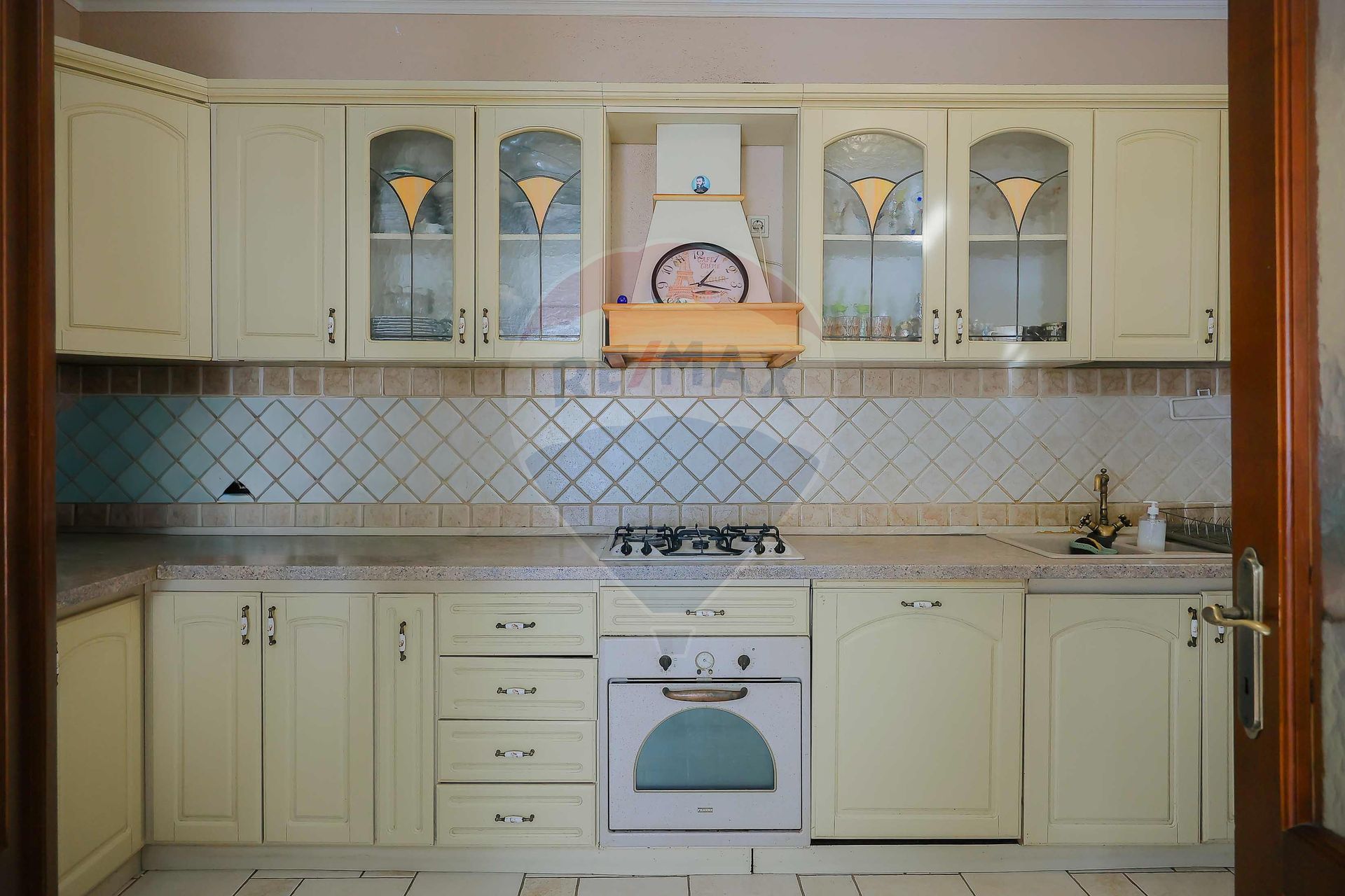 Electrocasnice: combină frigorifică, cuptor electric Franke, plită pe gaz, mașină de spălat vase, mașină de spălat haine (opțional).