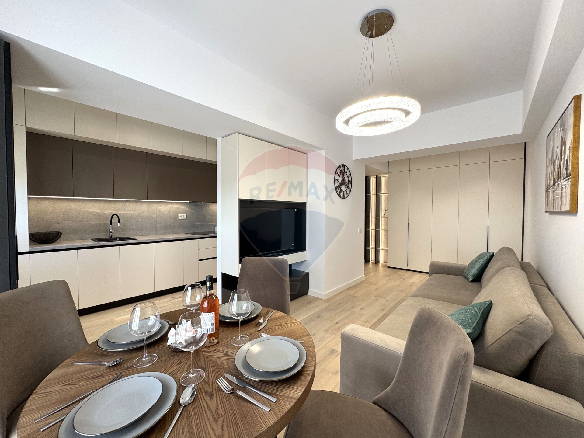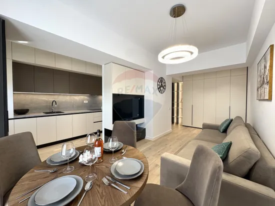 Apartamentul este amenajat cu atenție la detalii de o echipă de arhitecți și designeri, fiind complet mobilat și utilat cu mobilier premium și finisaje de calitate superioară. Totul este pregătit pentru tine – trebuie doar să îți aduci lucrurile personale.