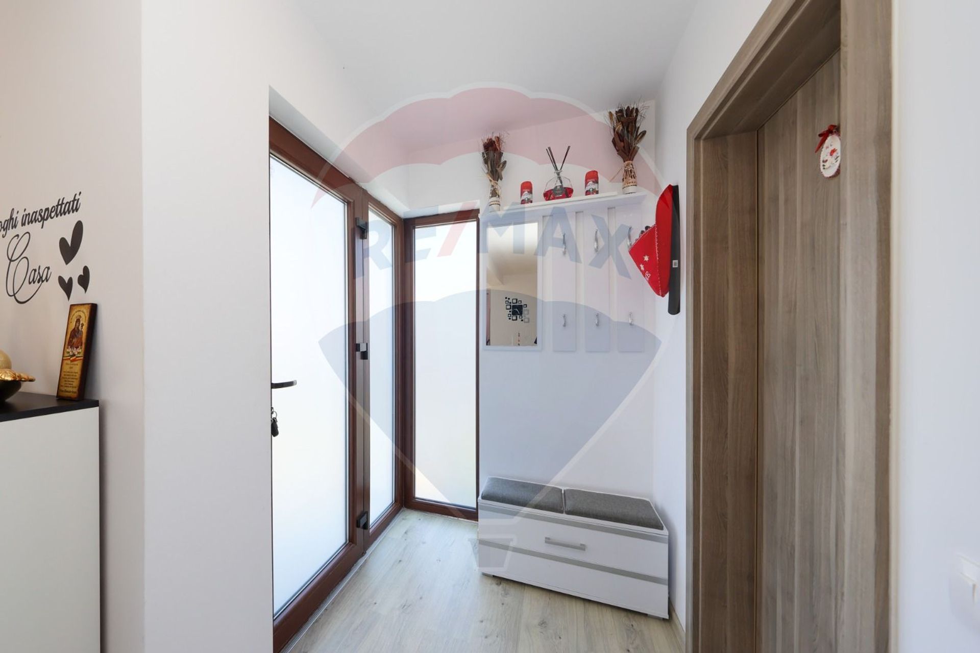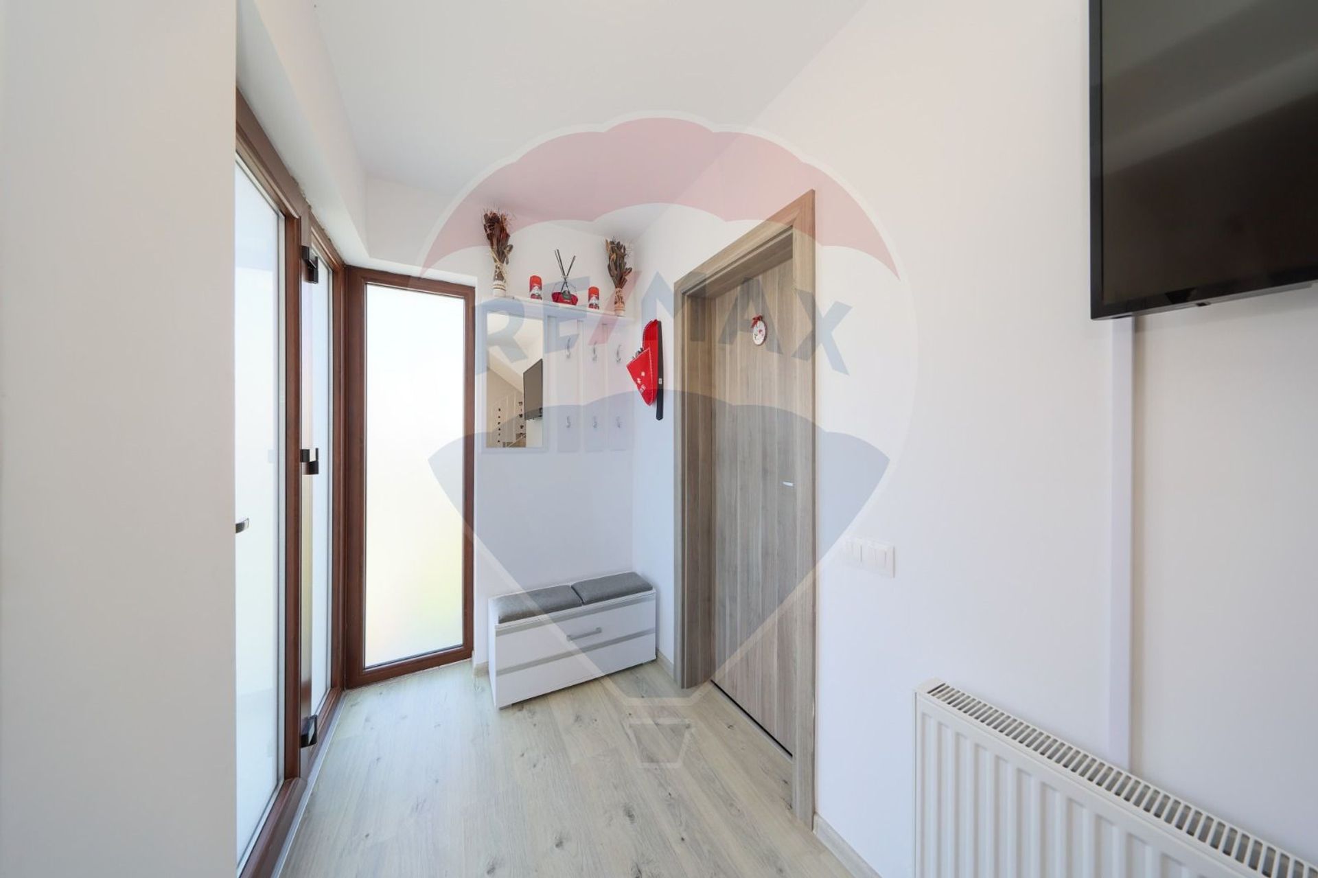 -Balcon cu jardiniere și vedere panoramică spre munți;