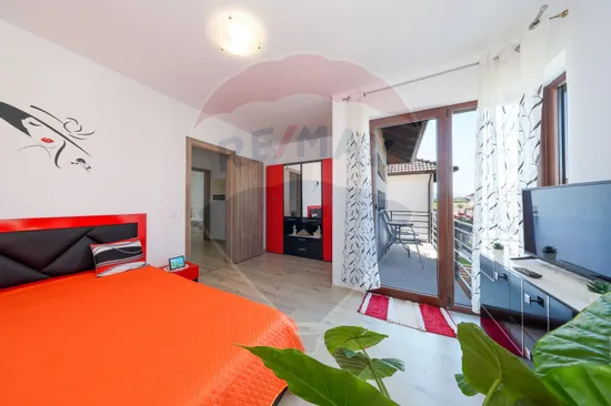 - Etaj: hol, doua dormitoare (unu cu balcon ), baie, dormitor matrimonial.