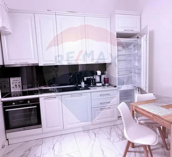 Bucătărie – dotată cu mobilier și electrocasnicele necesare, pregătită pentru utilizare imediată.