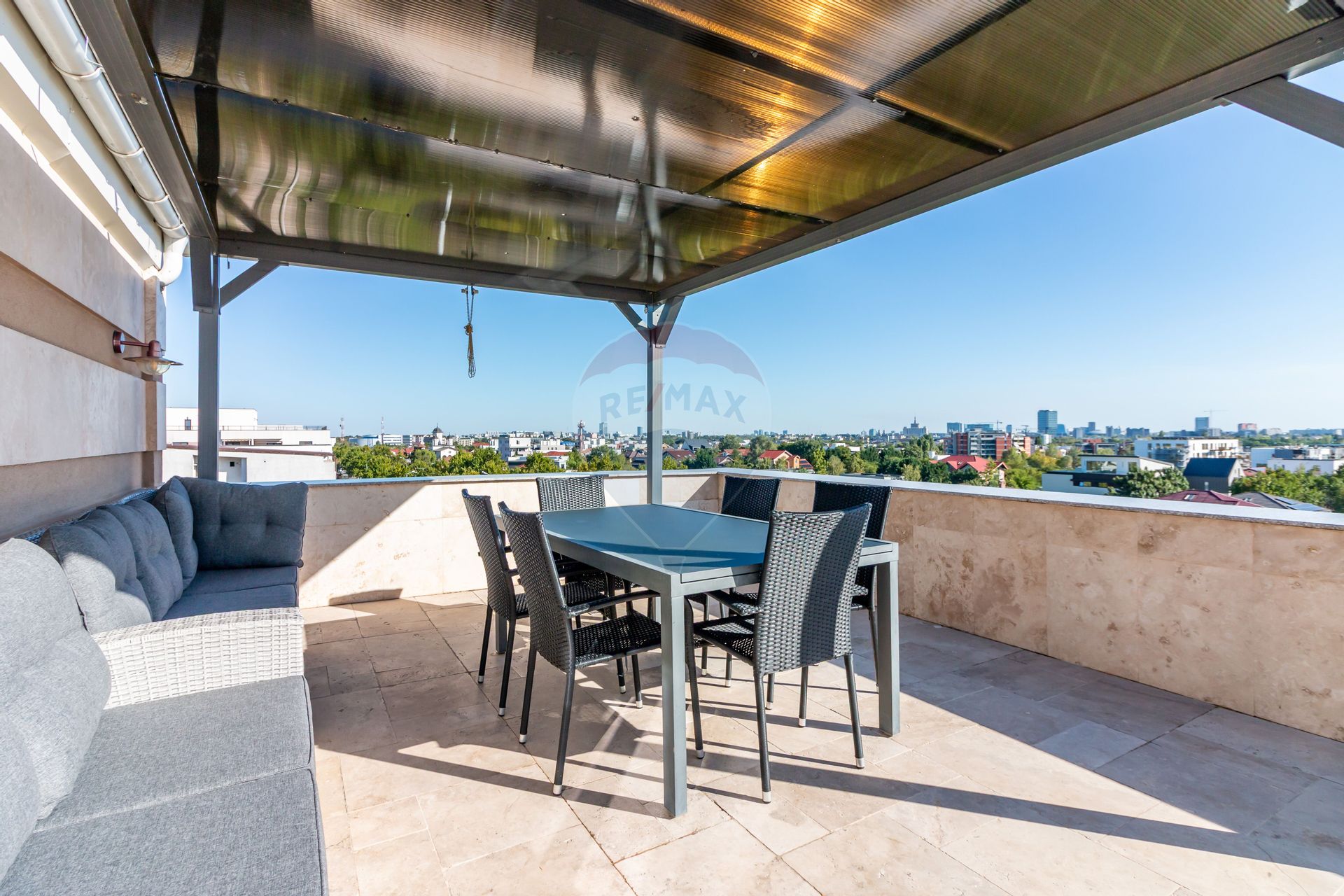 Cu o suprafață utilă de 180 mp, o terasă principală de 60 mp, acest penthouse oferă un cadru generos, ideal atât pentru viața de zi cu zi cât și pentru evenimente private. Livingul spectaculos, cu zone vitrate de mari dimensiuni, se deschide spre terasă, unde te întâmpină o panoramă urbană de excepție.