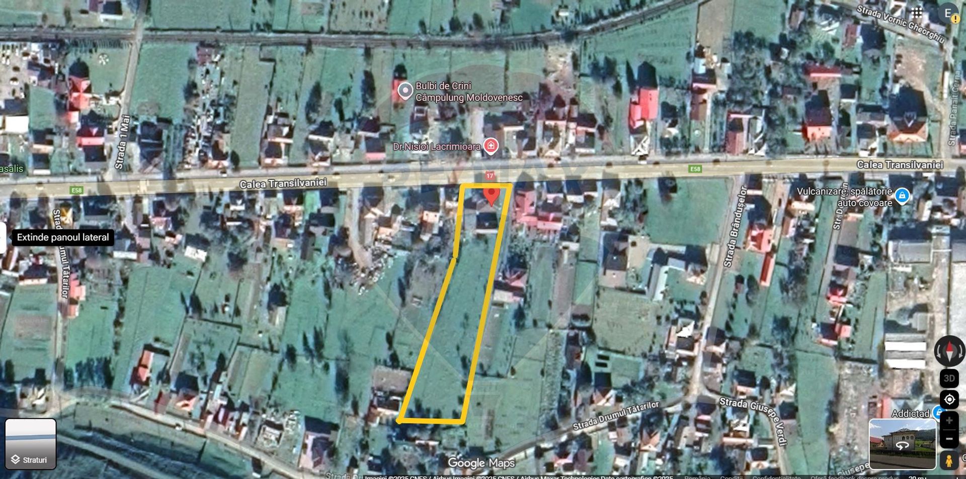 Descoperiți potențialul unui teren intravilan generos, cu o suprafață de 4822 mp și un front stradal de 30 m, amplasat strategic la șoseaua principală din Câmpulung Moldovenesc, pe Strada Splaiul Calea Transilvaniei, una dintre cele mai circulate și vizibile artere ale orașului.