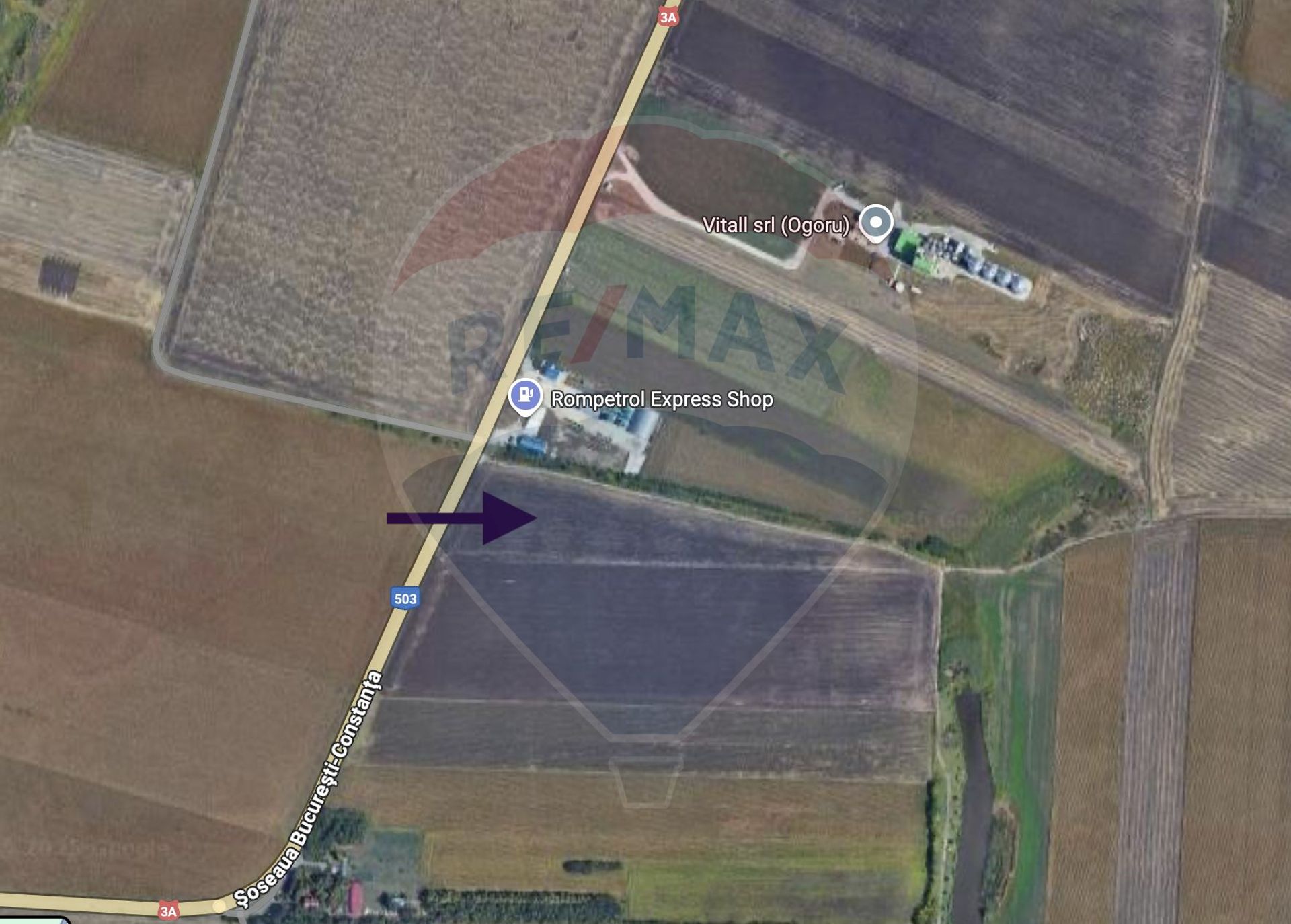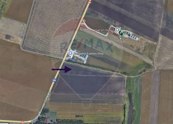 Vânzare teren extravilan, cu deschidere dublă și acces rapid la Autostrada A2 – ideal pentru dezvoltare comercială, logistică sau industrială.