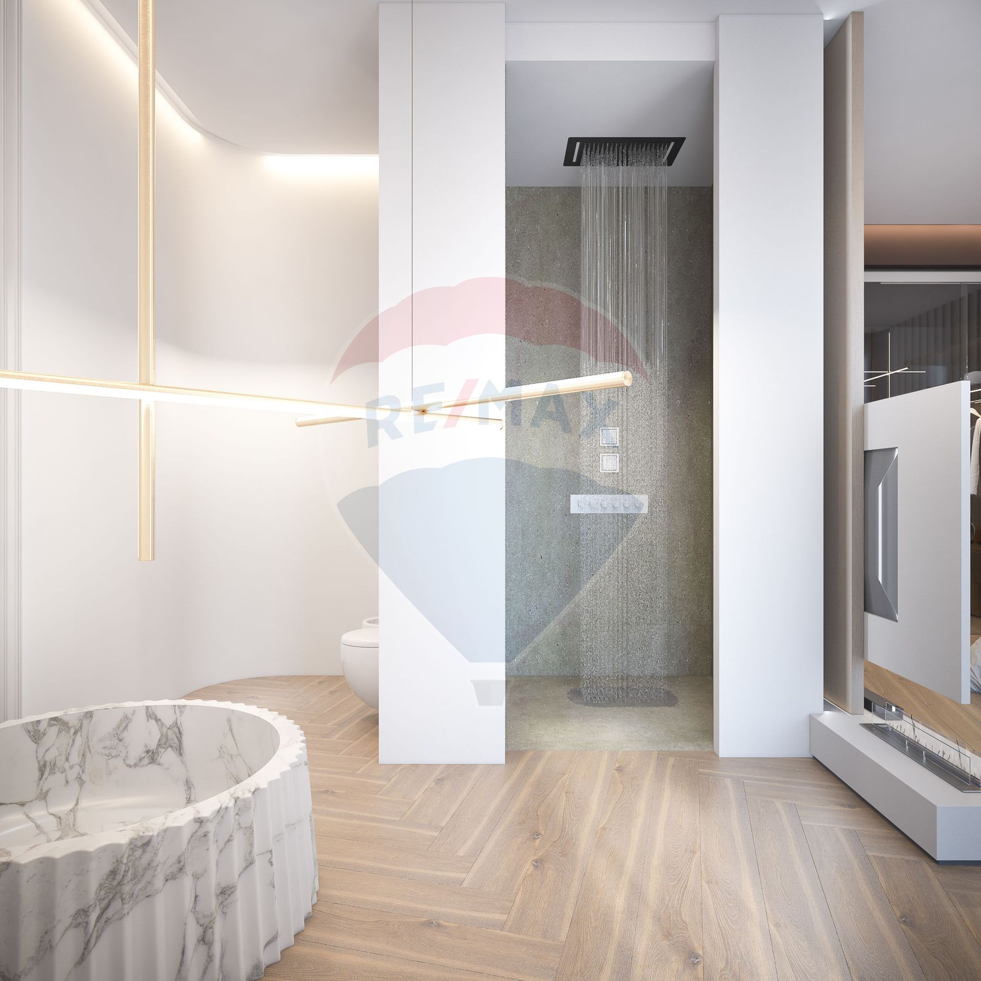 Imaginile sunt cu titlu de prezentare, pentru a va putea face o idee mai clara despre cum este dispus spatiul si cum ar putea fi amenajat. Pretul afisat este pentru spatiul nefinisat. Dezvoltatorul a preferat sa lase libere imaginatia si preferintele viitorului proprietar, pentru a putea adapta spatiul nevoilor sale, existand posibilitatea atat a schimbarii complete a designului interior, cat si a reconfigurarii complete a interioarelor. Desigur, proiectul afisat exista si poate fi contractat suplimentar, daca va veti indragosti de ce a gandit arhitectul care s-a ocupat de design.