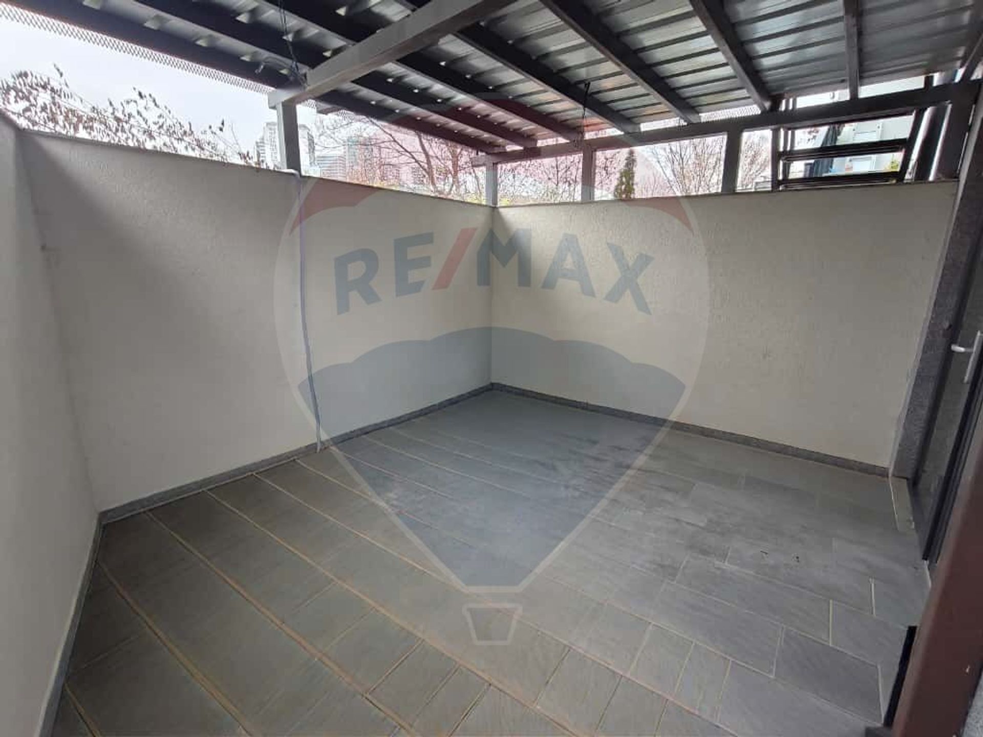 terasă acoperită, utilizabilă atât ca spațiu exterior pentru lucru, cât și ca zonă de relaxare.