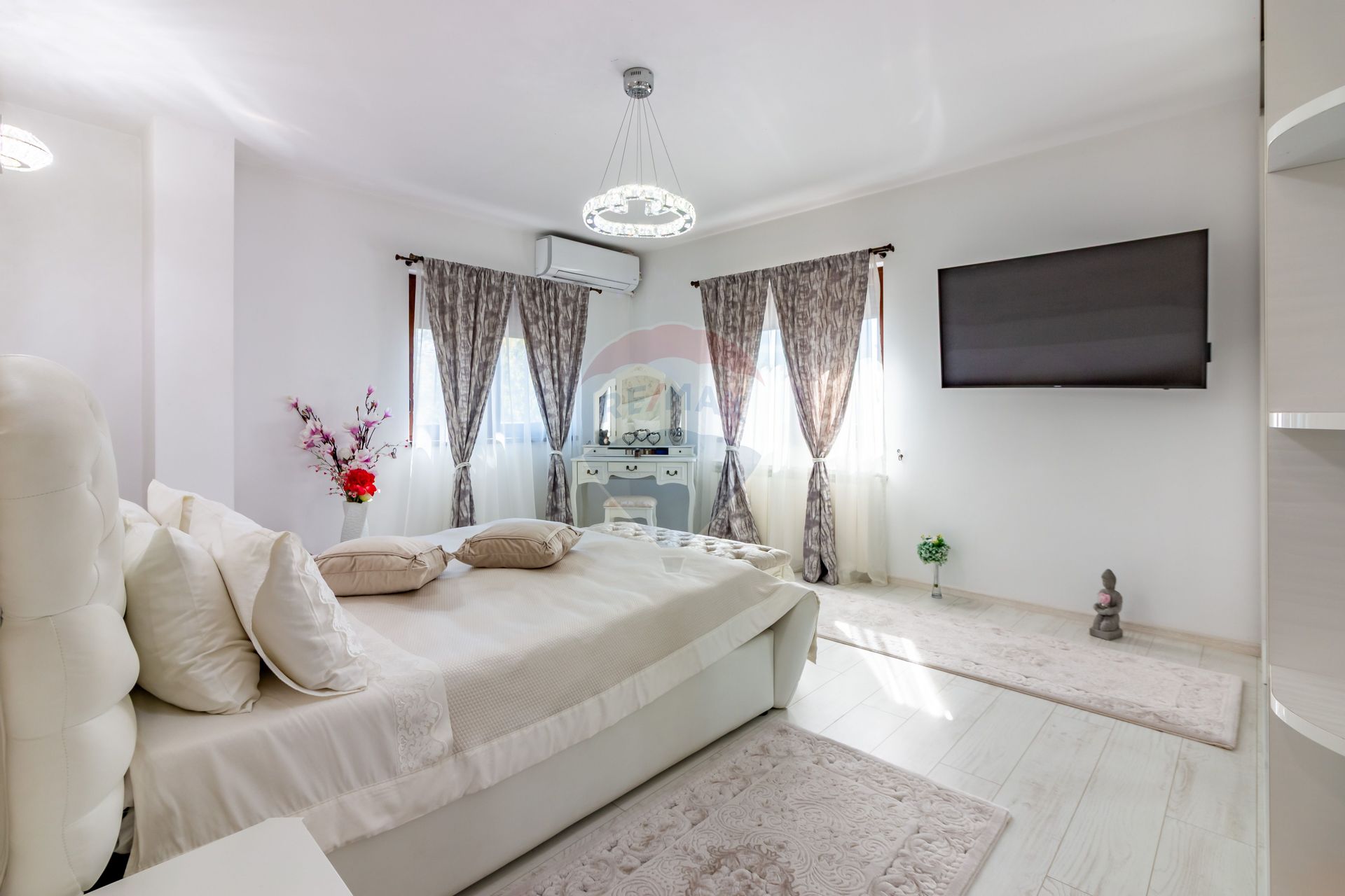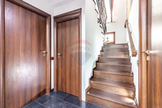 La etaj, zona de noapte oferă 3 dormitoare confortabile, dintre care unul matrimonial cu dressing propriu, plus două băi moderne.