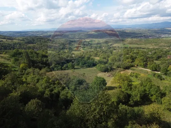 Terenul cu acces la asfalt, are suprafața de 5,000 mp din care 500 mp sunt intravilan si restul de 4,500 mp sunt extravilan.