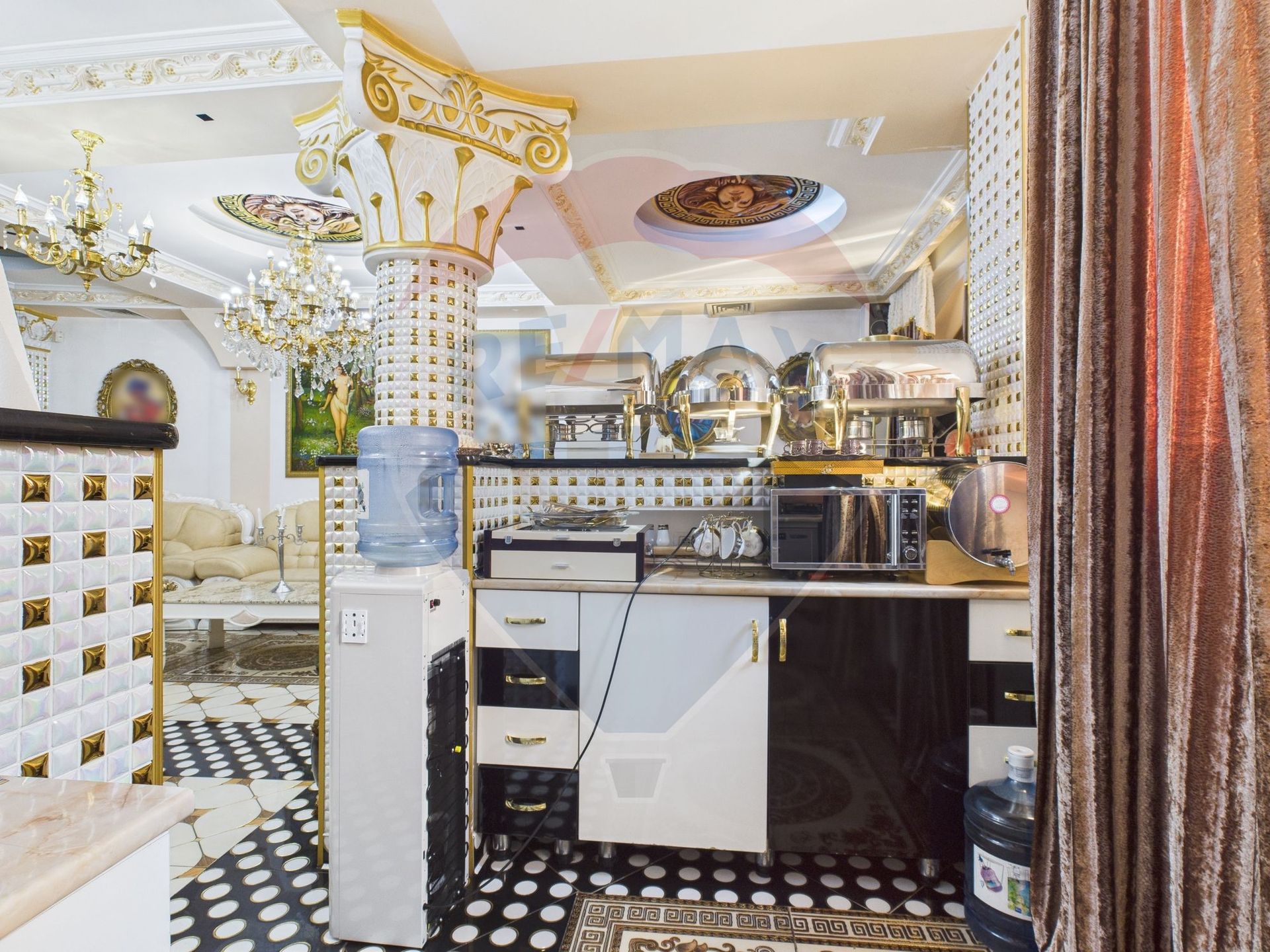 Dotari: garaj, piscina, 2 bucatarii, 2 saune, terasa inchisa, dressinguri, spatii de depozitare, complet mobilata si utilata