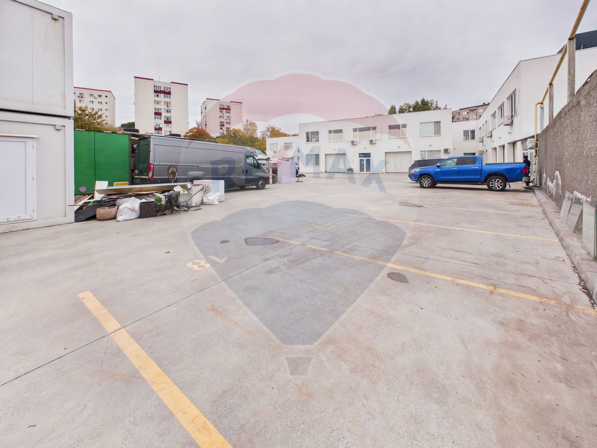 Terenul are 2.048 mp, platformă betonată, în concesiune de la Primărie pe toată perioada existenței acesteia. Curtea este pregătită pentru operare, ai canalizare, iluminat exterior, cabină de pază de 11 mp, curent trifazic 380 V și sistem de supraveghere video. Manevrezi camioane ușor și parchezi fără blocaje.