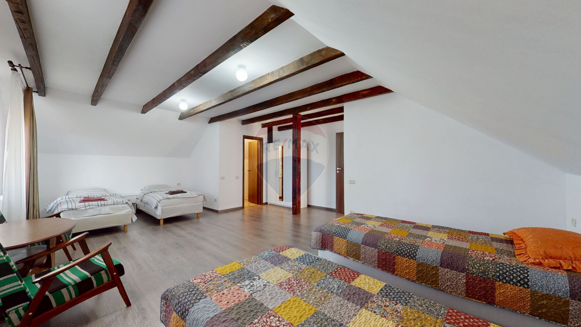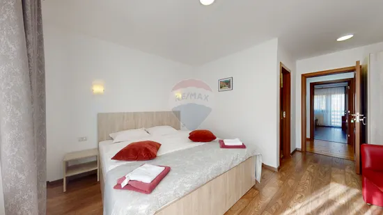 • 1 apartament cu 2 camere matrimoniale, baie comună și balcoane