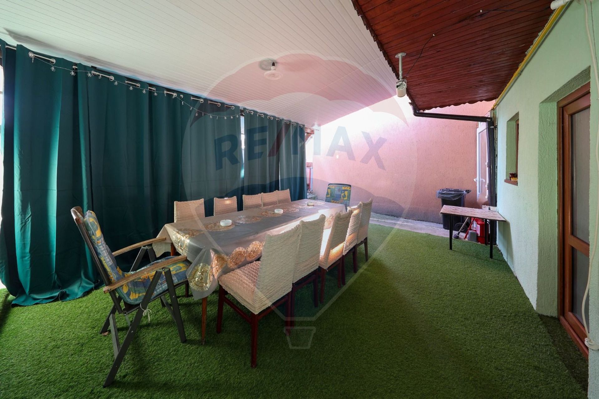 Terasă acoperită, amenajată cu videoproiector, perfectă pentru seri memorabile alături de familie și prieteni;