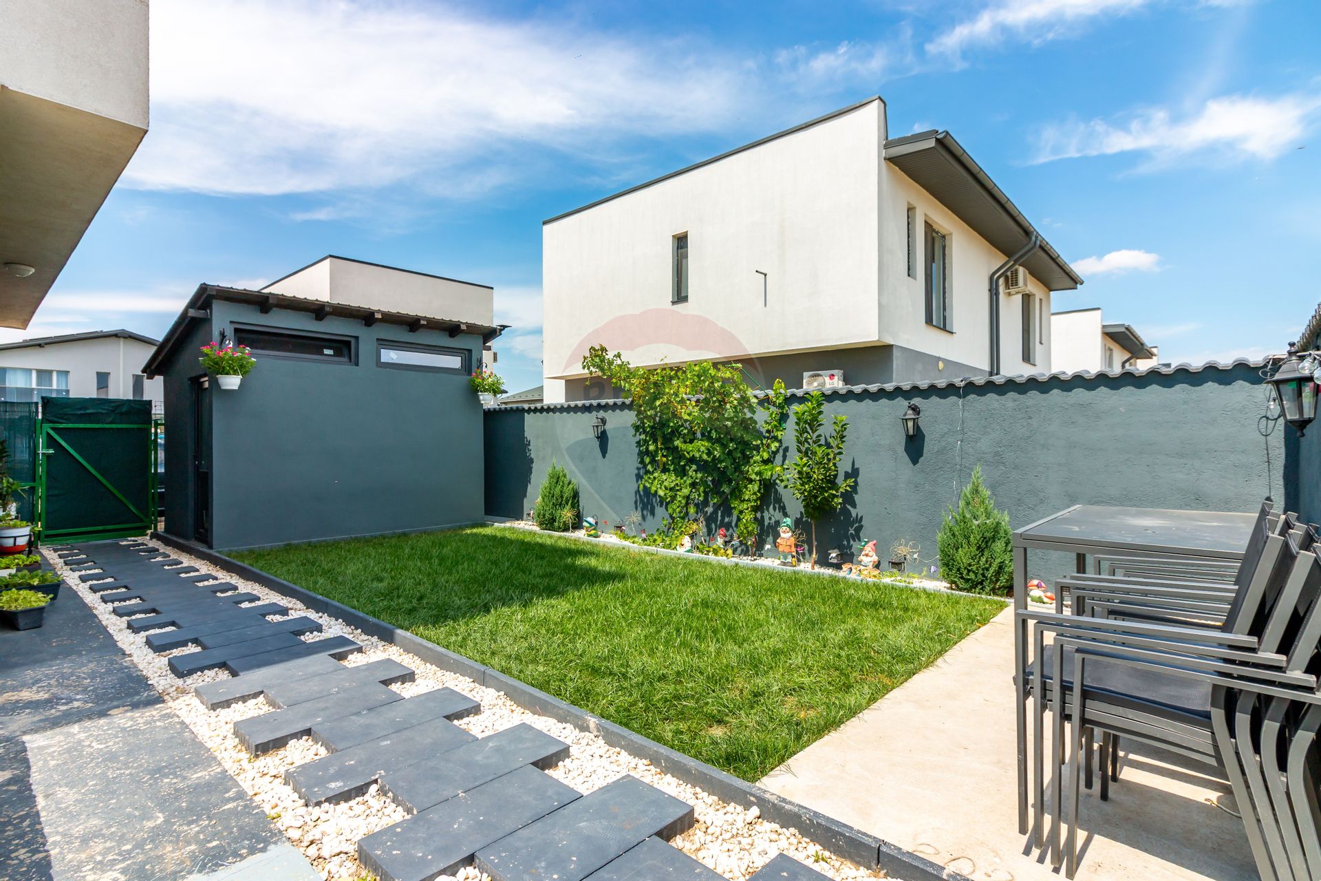 Terenul total are 200 mp, cu o curte suficientă pentru relaxare, grădină sau spațiu de joacă.