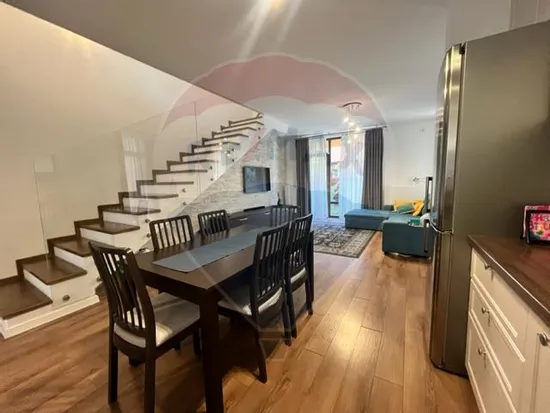 Vă prezentăm pentru inchiriere o vilă elegantă și funcțională, situată într-un ansamblu rezidențial privat, ideal pentru familii care își doresc liniște, confort și acces facil către punctele de interes din zonă.
