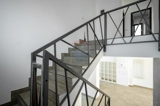 La parter te întâmpină un living luminos, o cameră open-space și o baie, iar spațiul poate fi ușor compartimentat dacă îți dorești un dormitor suplimentar sau o bucătărie închisă. Etajul oferă 3 dormitoare și 2 băi (una transformată momentan în bucătărie), iar designul permite adaptarea rapidă în funcție de nevoi.