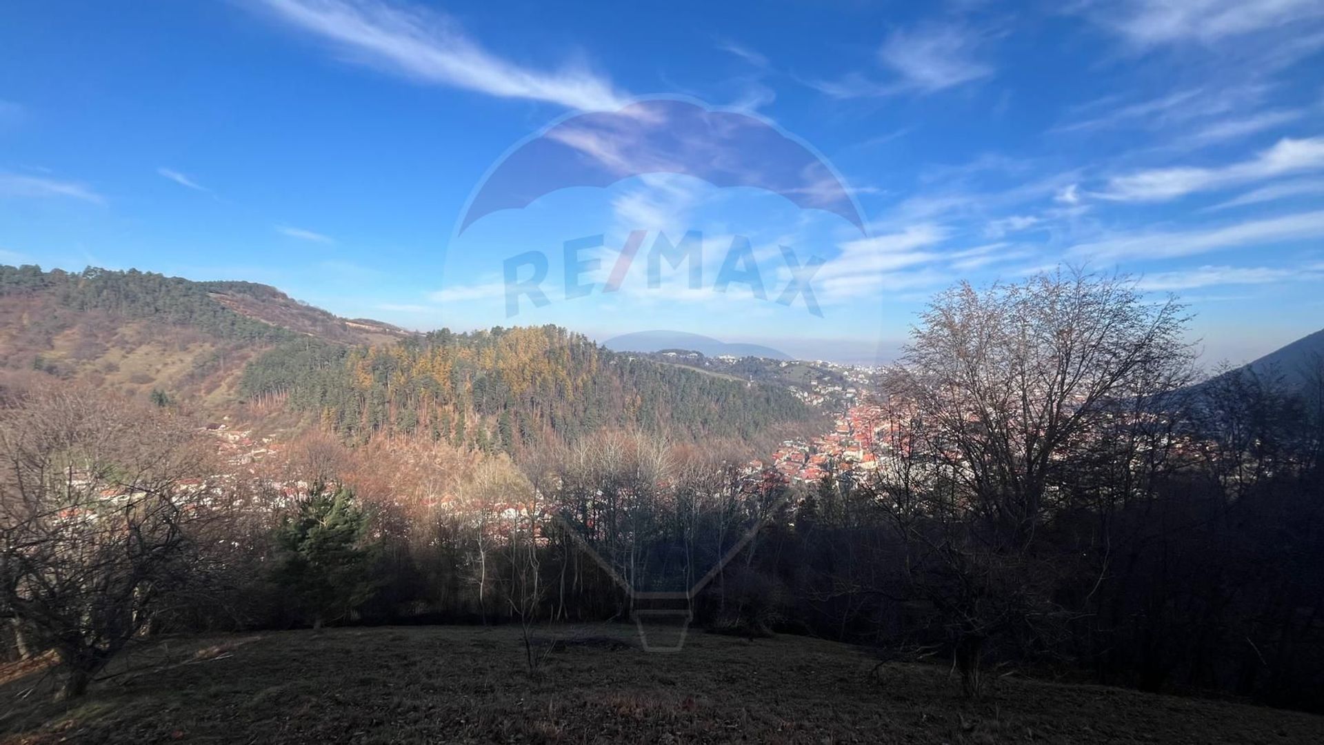 Teren colinar panoramic de 17.684 mp în Scheii Brașovului, cu vedere completă asupra orașului și potențial pentru locuire sau dezvoltare turistică premium.