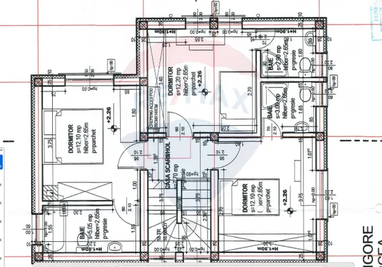 La Etaj avem 3 camere cu suprafețe de aproximativ 12 MP, fiecare cameră are baie proprie.