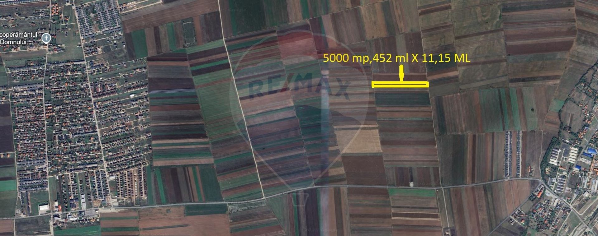 Notă: Forma terenului este lungă și îngustă, aspect important de luat în considerare pentru utilizare.