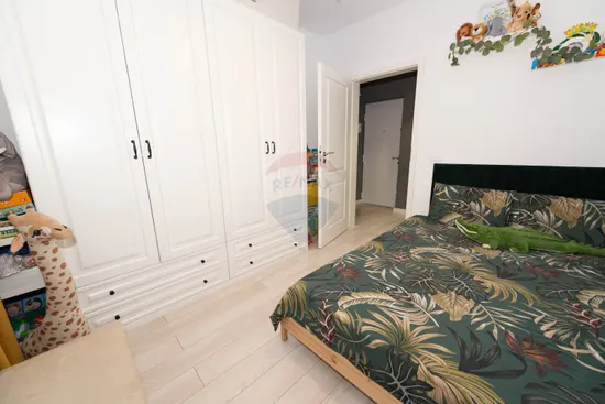 Locuința se predă complet mobilată și utilată, la standarde de lux, cu finisaje moderne, beneficiind de obiecte sanitare Gala, baterii Grohe, mobilier realizat din MDF vopsit, mașină de spălat și uscător de rufe, precum și aer condiționat Gree, asigurând un confort ridicat pe tot parcursul anului.