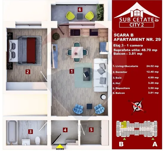 Apartament 2 camere nou – Subcetate City 2 | Sânpetru – Brașov | Incalzire in pardoseala