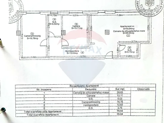 Apartamentul are o suprafață utilă de 80 mp și este compartimentat eficient, astfel: