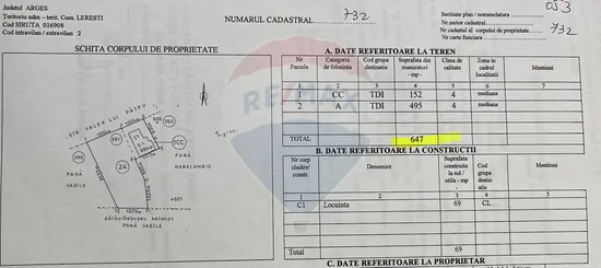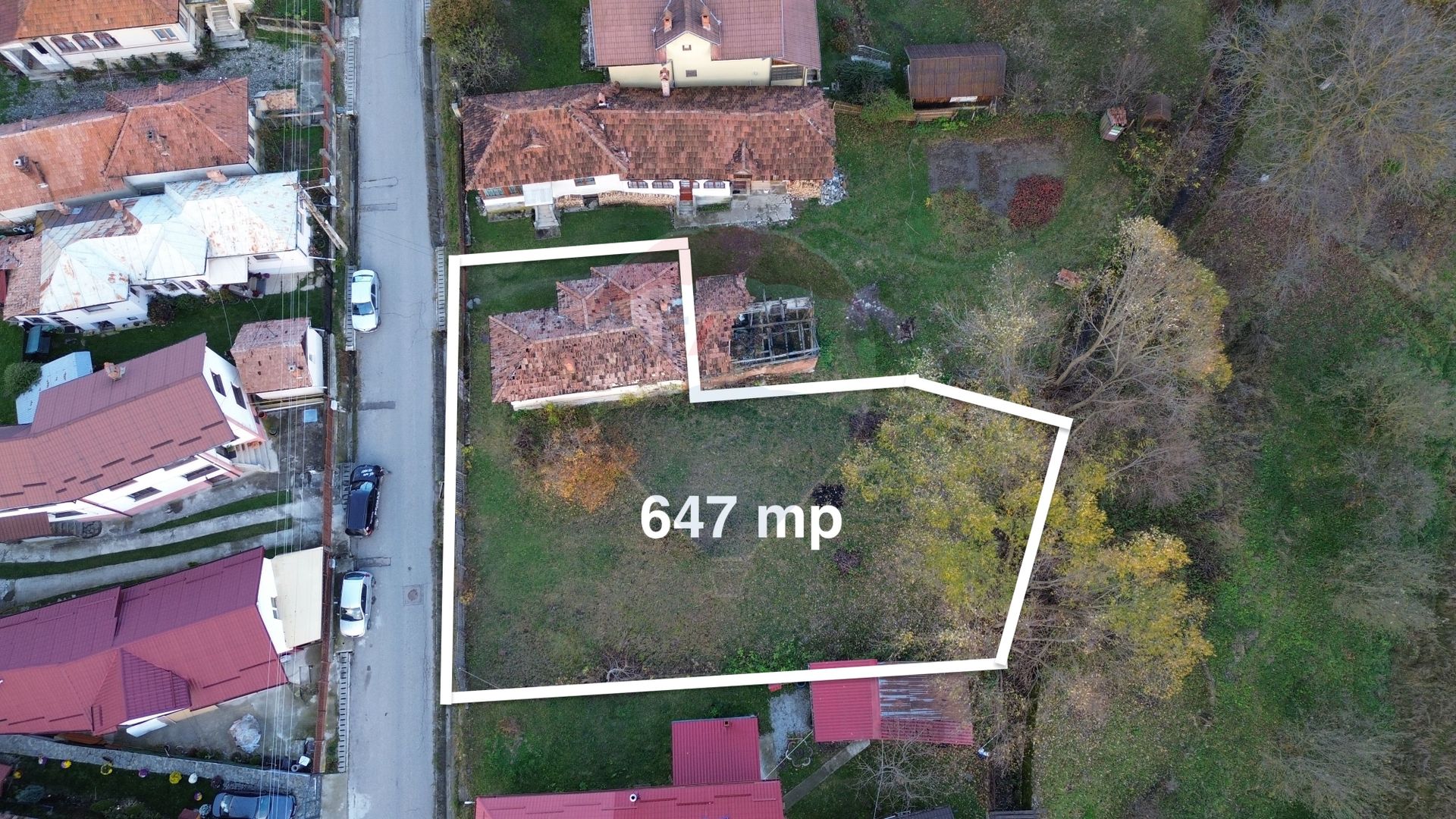 Proprietatea dispune de un teren generos de 647 mp, cu o deschidere de 26 m la strada principală, oferind vizibilitate excelentă și acces facil iar in spate un mic pârâu.