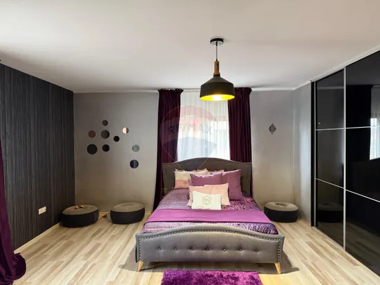 Locuința este mobilată și utilată complet, cu mobilier de calitate superioară, atent ales pentru a combina esteticul cu funcționalitatea. Dormitoarele, băile și spațiile auxiliare sunt deosebit de spațioase, beneficiind de multiple zone de depozitare integrate.