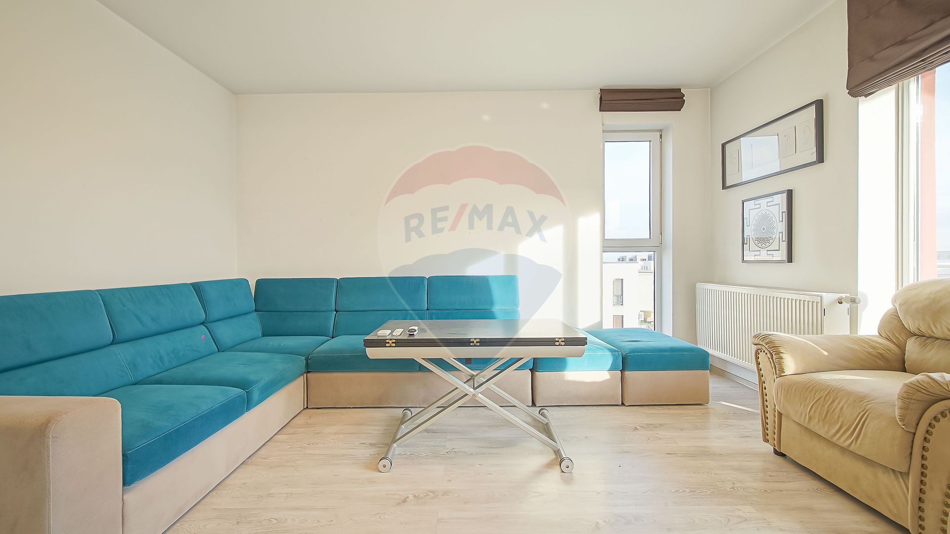 Livingul, aerisit și luminos, te invită să privești în jos spre locul tău de parcare—un mic detaliu ce aduce liniște și siguranță. Tot de aici porți pașii spre balconul de 3,36 metri pătrați, locul perfect pentru o cafea liniștită în zorii zilei, când Brașovul începe să prindă viață.