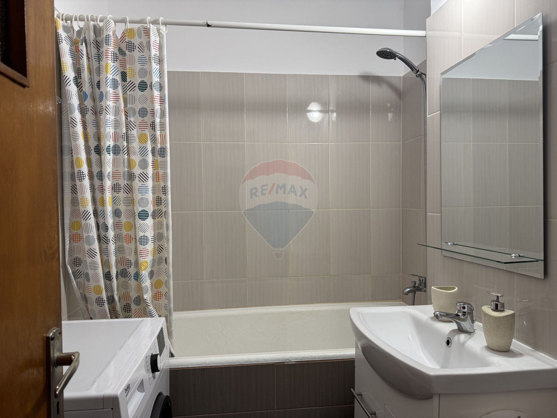 Baia este cu cada. Tot aici este instalata masina de spalat rufe.